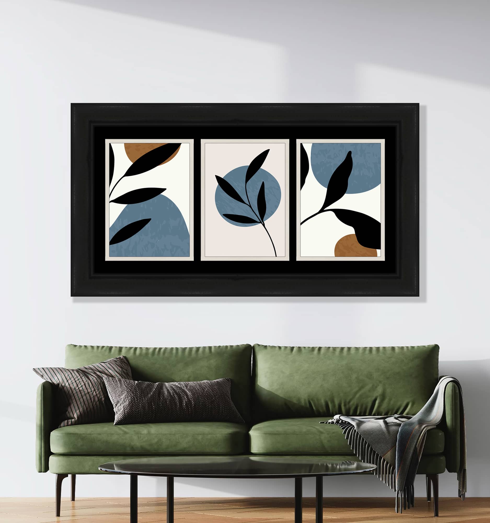 Mavi ve Siyah Yaprak Desenli Tablo