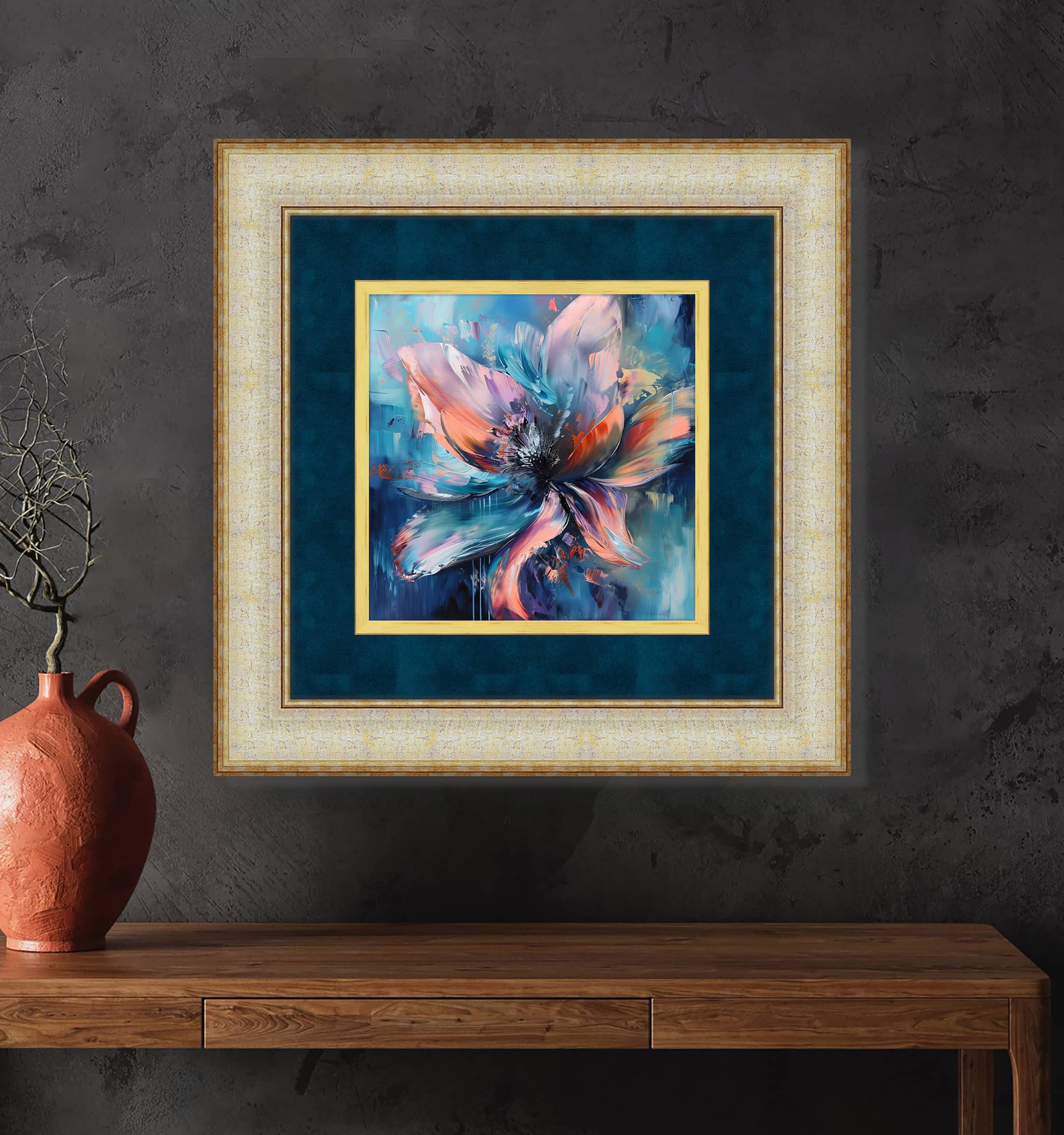 Mavi ve Turuncu Soyut Çiçek Tablosu
