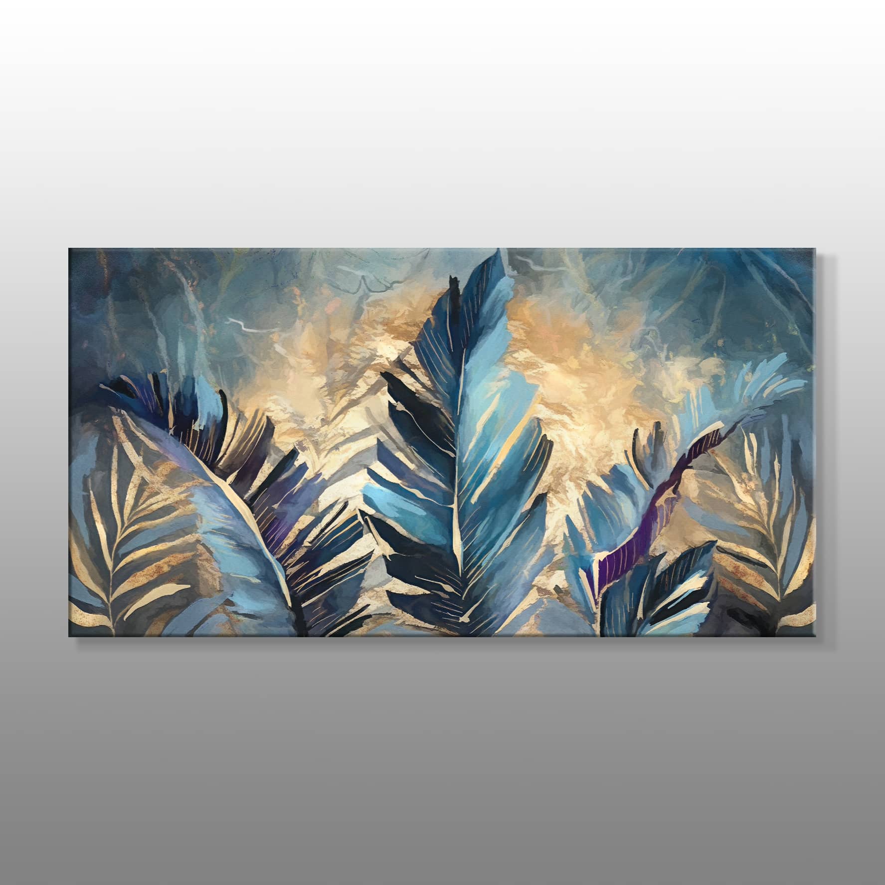 Mavi Yapraklar Yağlı Boya Kanvas Baskı Tablo