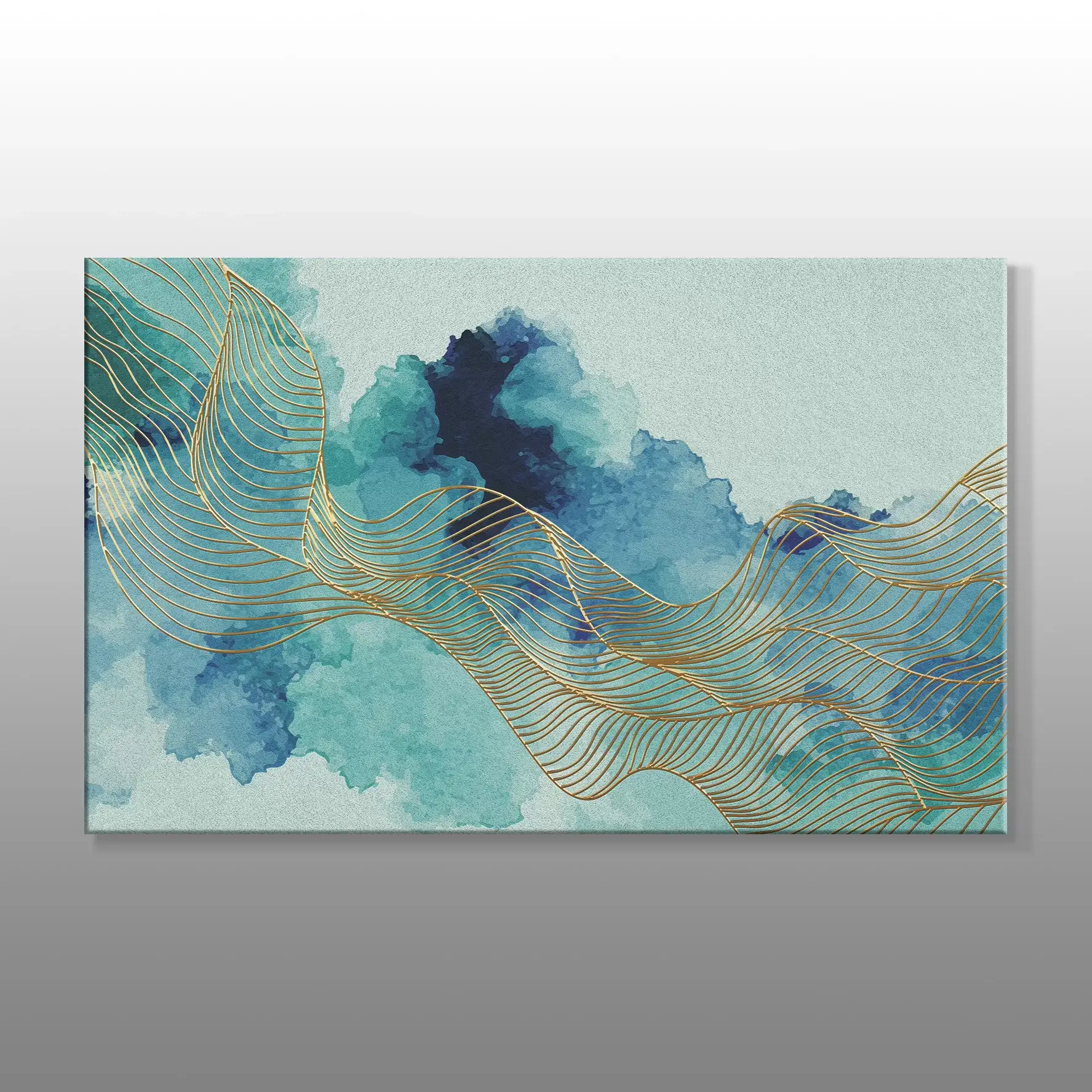 Mavinin Tonları Ve Altın Sarmal Soyut Kanvas Baskı Tablo