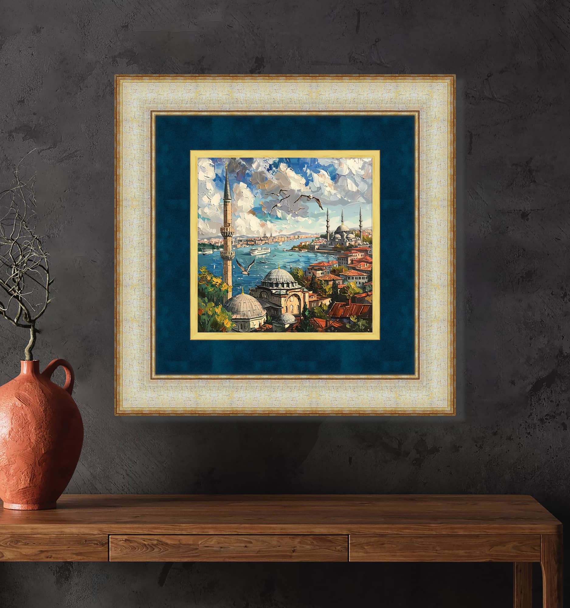 Minareler Arasında Tablo, geleneksel mimarinin zarif ve derin anlamını yansıtan etkileyici bir eserdir. Bu tablo, bir şehrin siluetindeki minarelerin zarif yükselişi ve mistik havasını mükemmel şekilde betimler. Minarelerin gökyüzüne doğru uzanması, izleyiciyi adeta tarihe ve kültüre doğru bir yolculuğa çıkarır. Renklerin ve detayların uyumuyla, Minareler Arasında tablosu, sadece bir manzara değil, aynı zamanda bir kültür ve tarih yansımasıdır. Tablo hem modern hem de klasik dekorasyon stillerine mükemmel uyum sağlar. Yüksek kaliteli kanvas baskı yöntemiyle oluşturulmuş bu eser hem görsel hem de duygusal bir etki yaratır. Eserin etkileyici minareler arasında yükselen huzurlu atmosferi, mekâna derinlik katar. Her bir minarenin silueti, zamansız bir güzellik ve anlam taşır. Minareler Arasında Tablosu, özellikle geleneksel veya tarihi atmosfere sahip mekânlar için ideal bir seçimdir. Galeri Gusto’nun koleksiyonunda yer alan Minareler Arasında gibi eserler, yaşam alanınıza zarif bir dokunuş katmak ve hem estetik hem de kültürel derinlik sağlamak için mükemmel bir tercihtir.