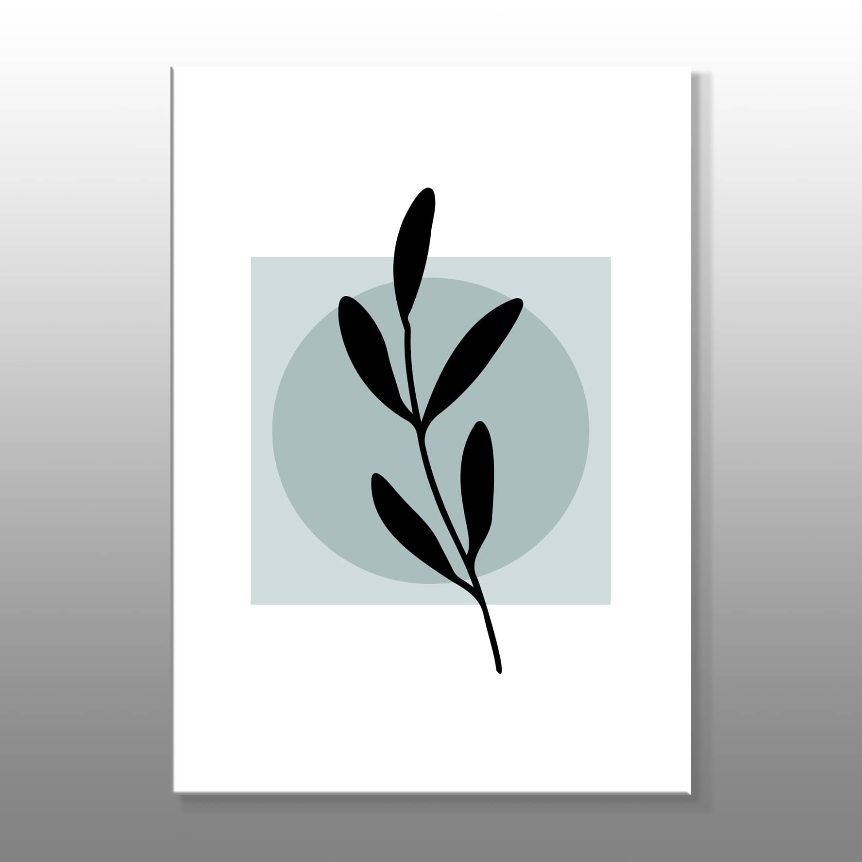 Minimal Açık Mavi Şekillerin Ortasındaki Bitki Kanvas Baskı Tablo