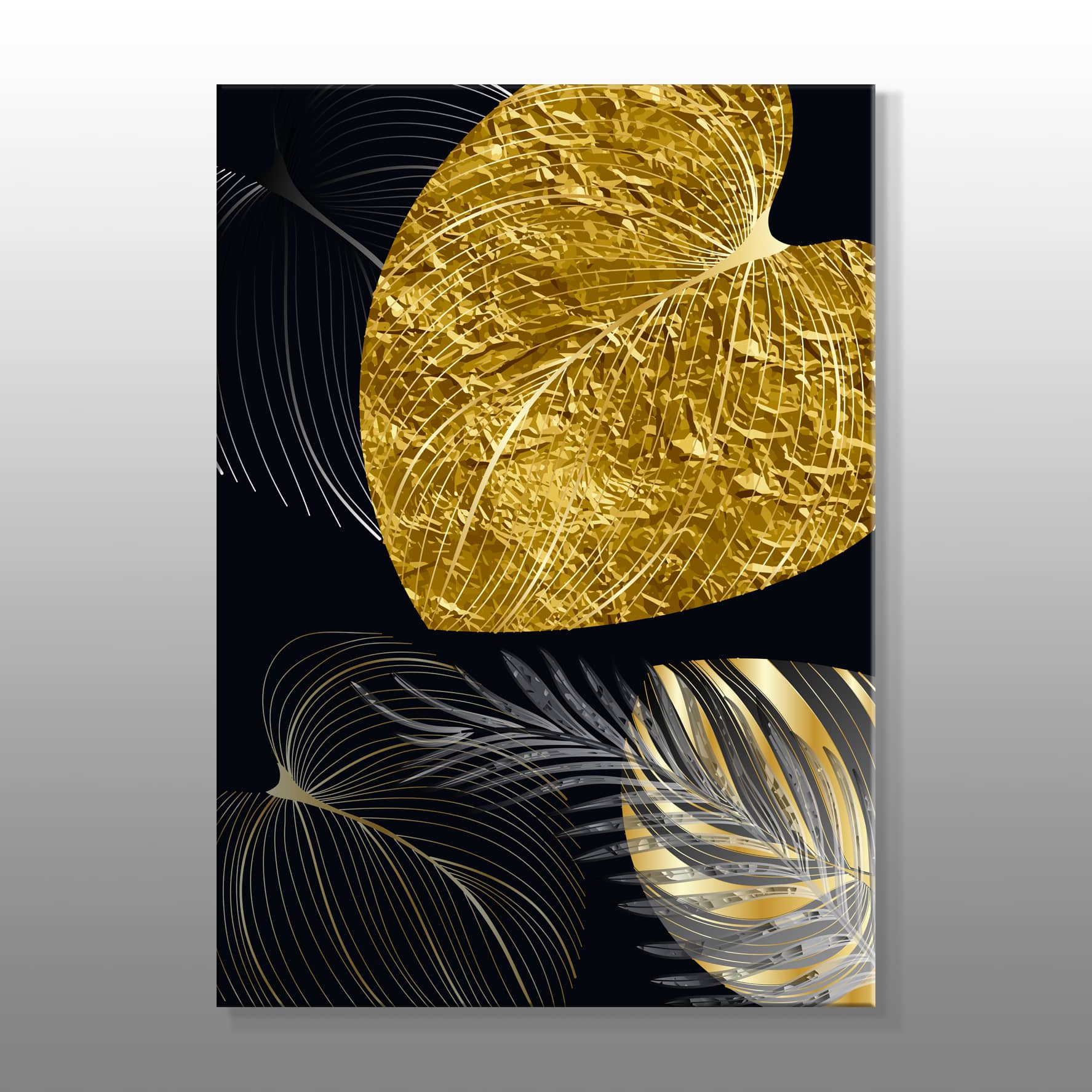 Minimal Altın Yaprak Çizimi Kanvas Baskı Tablo
