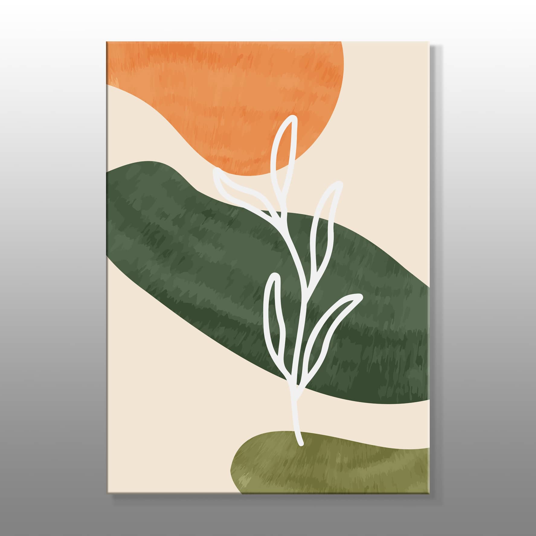 Minimal Beyaz Bitki Çizgileri Çizimi Kanvas Baskı Tablo