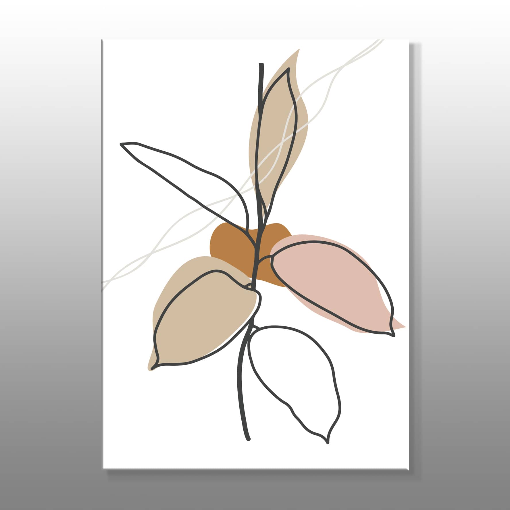Minimal Çizgisel Yapraklar Kanvas Baskı Tablo