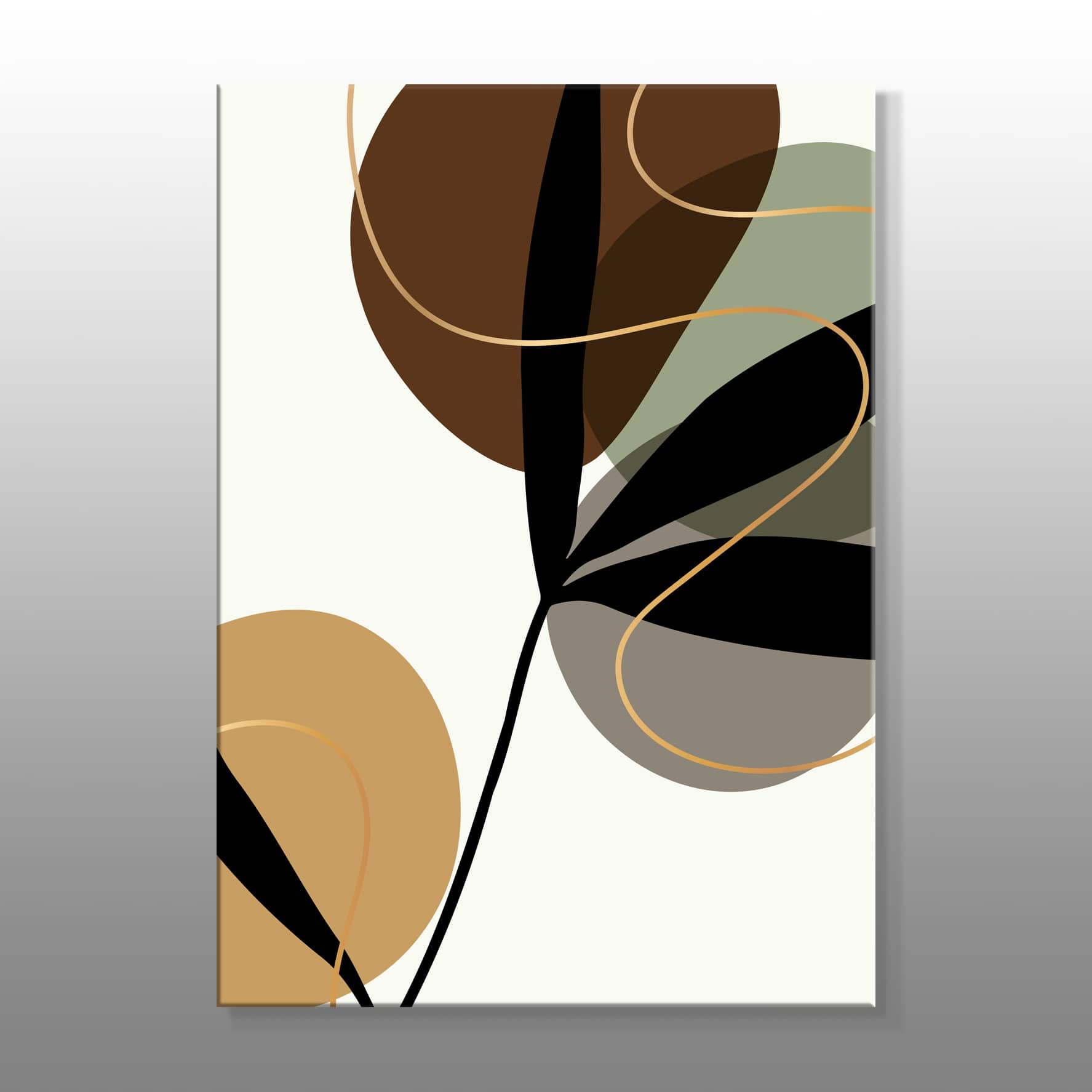 Minimal Dört Renk, Siyah Bitki Ve Altın Çizgiler Kanvas Baskı Tablo