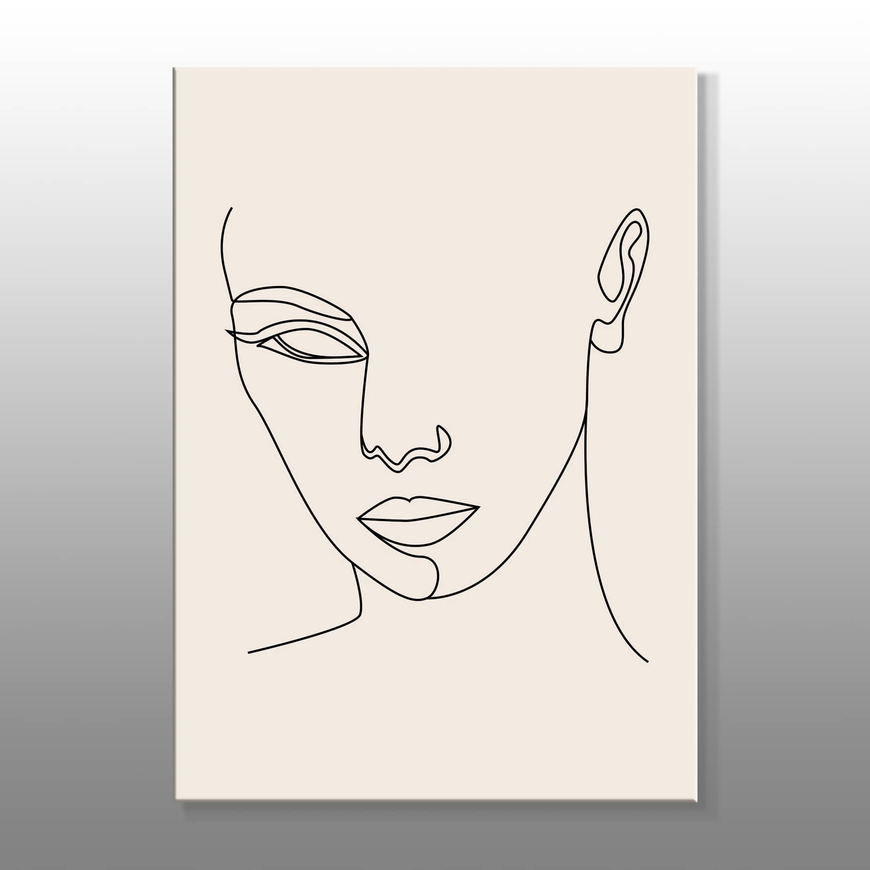 Minimal Kadın Yüzü Tek Çizgi Çizimi Kanvas Baskı Tablo