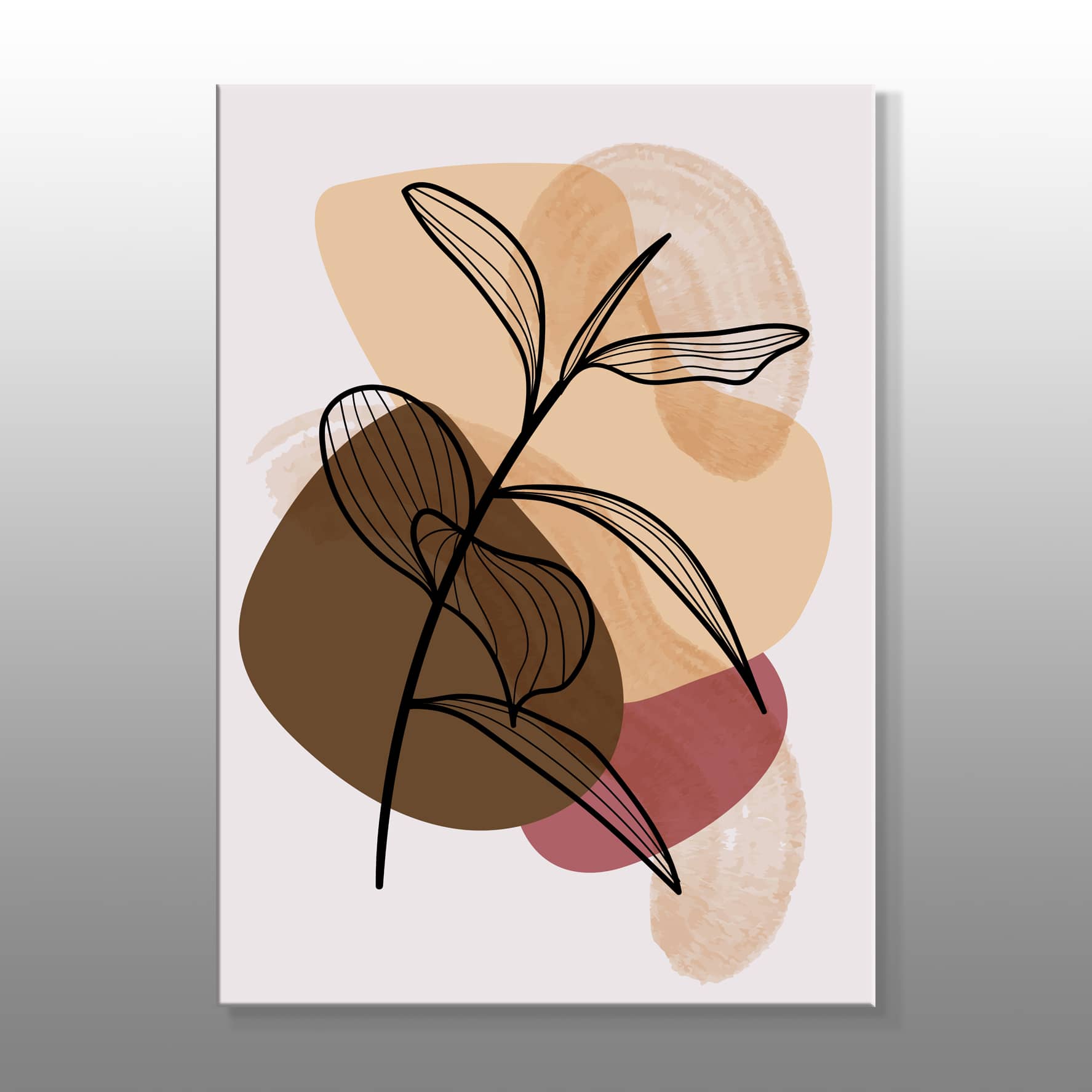 Minimal Kahve Renkler Ve Bitki Kanvas Baskı Tablo