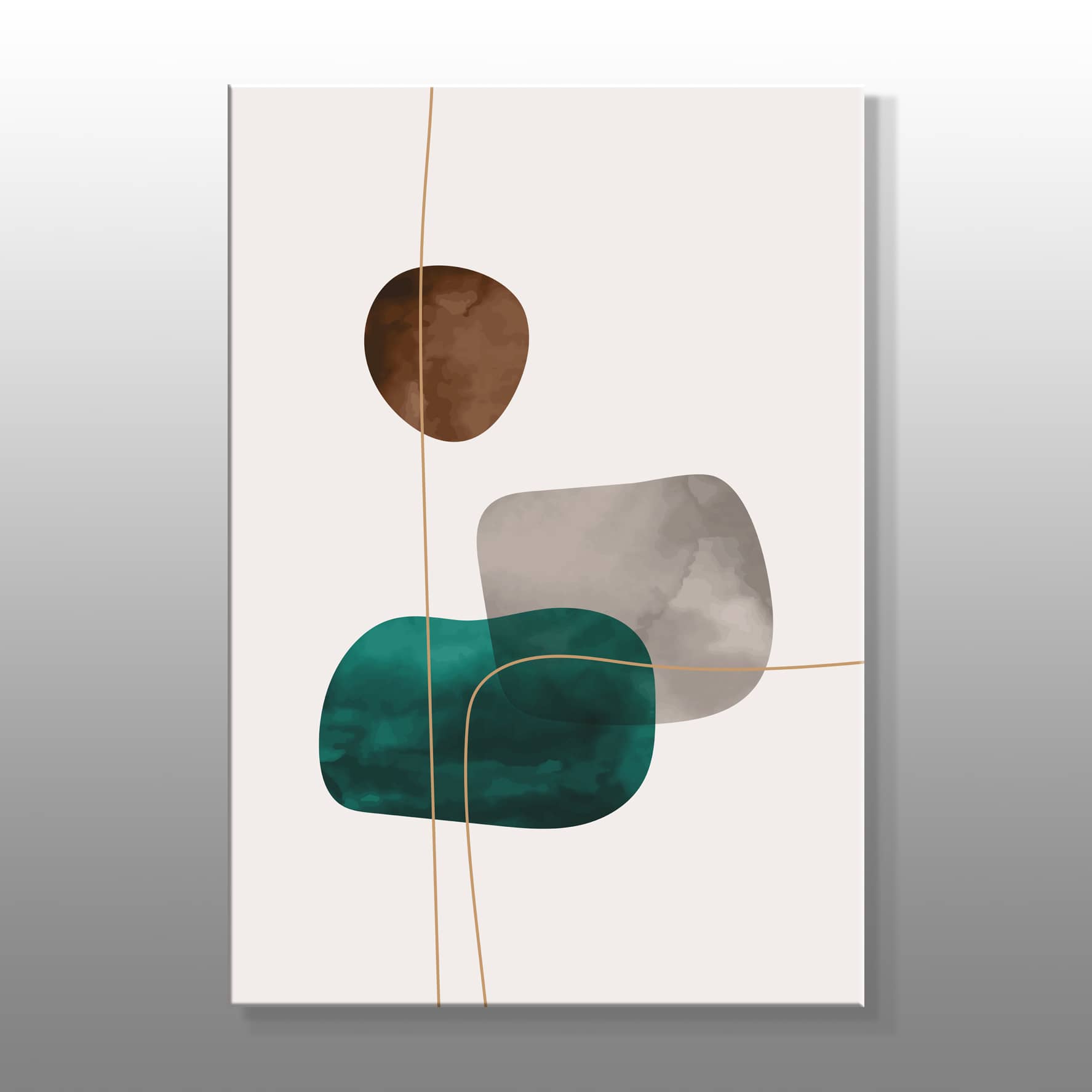 Minimal Kahverengi, Mavi Ve Gri Renkler Çizimi Kanvas Baskı Tablo