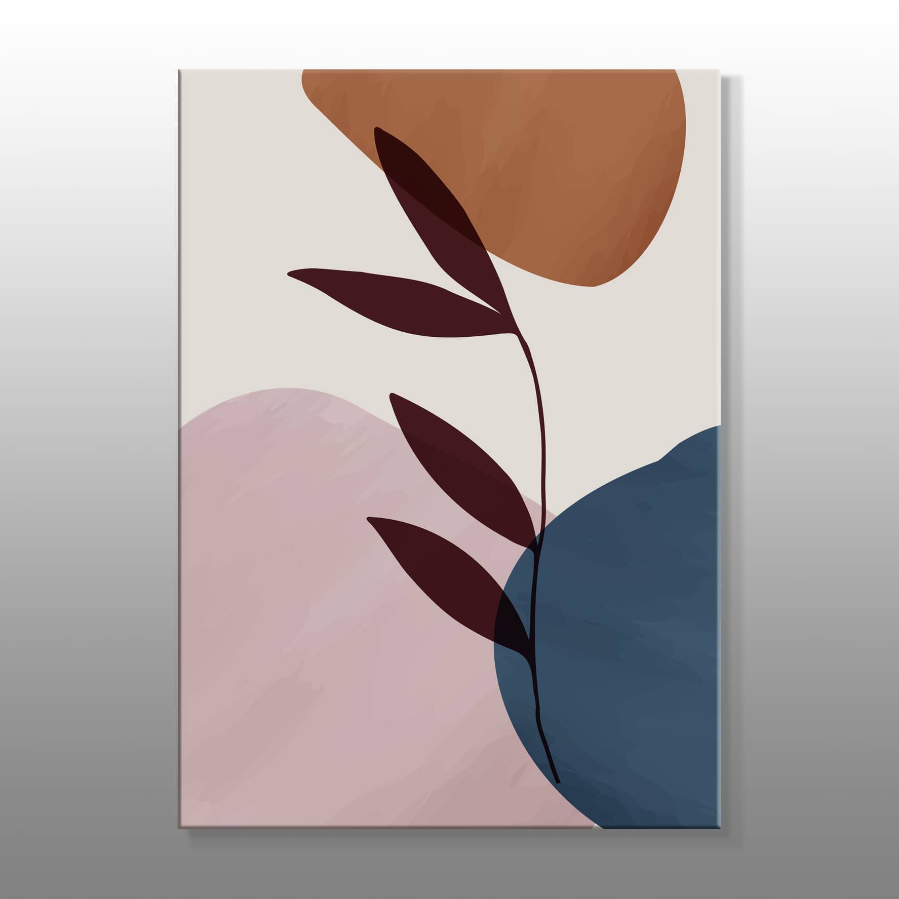 Minimal Koyu Renkler Ve Yapraklar Kanvas Baskı Tablo