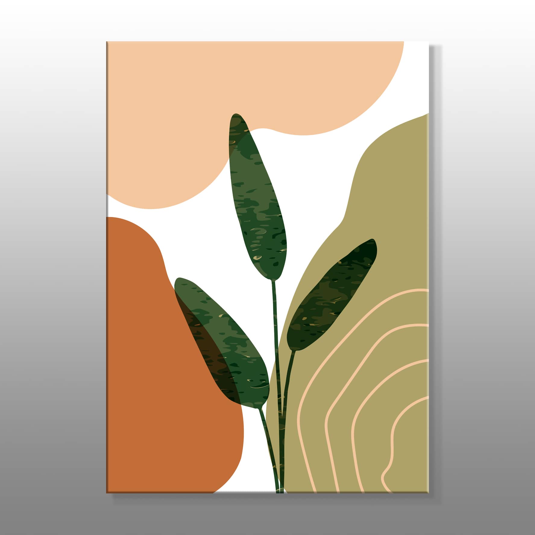 Minimal Koyu Yeşil Bitki Gölgesi Kanvas Baskı Tablo