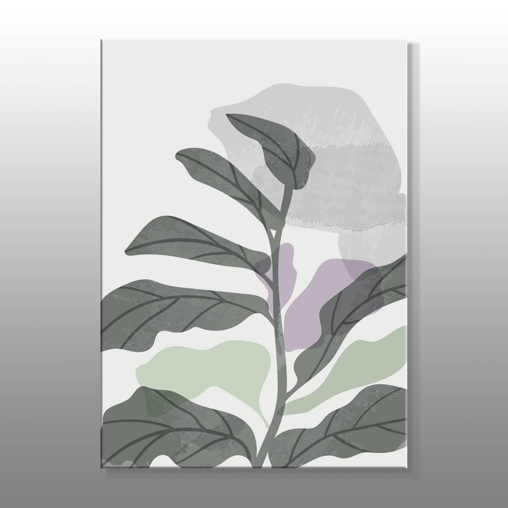 Minimal Lila, Yeşil, Gri Renkler Ve Bitki Kanvas Baskı Tablo