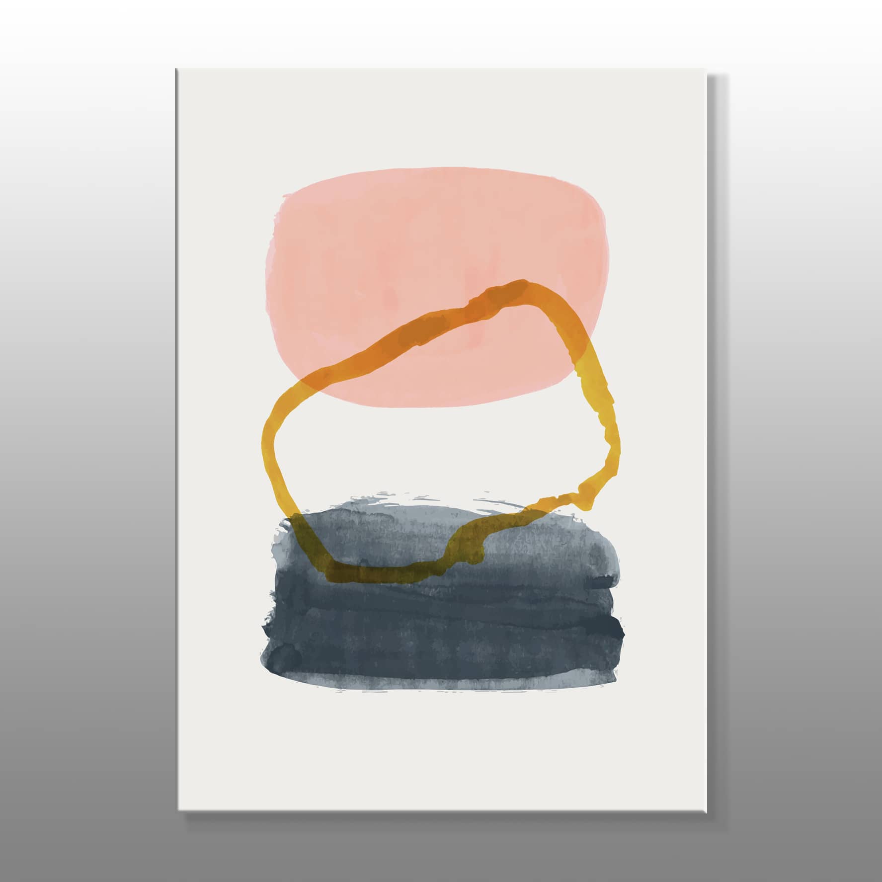 Minimal Mavi Pembe Ve Altın Şekil Kanvas Baskı Tablo