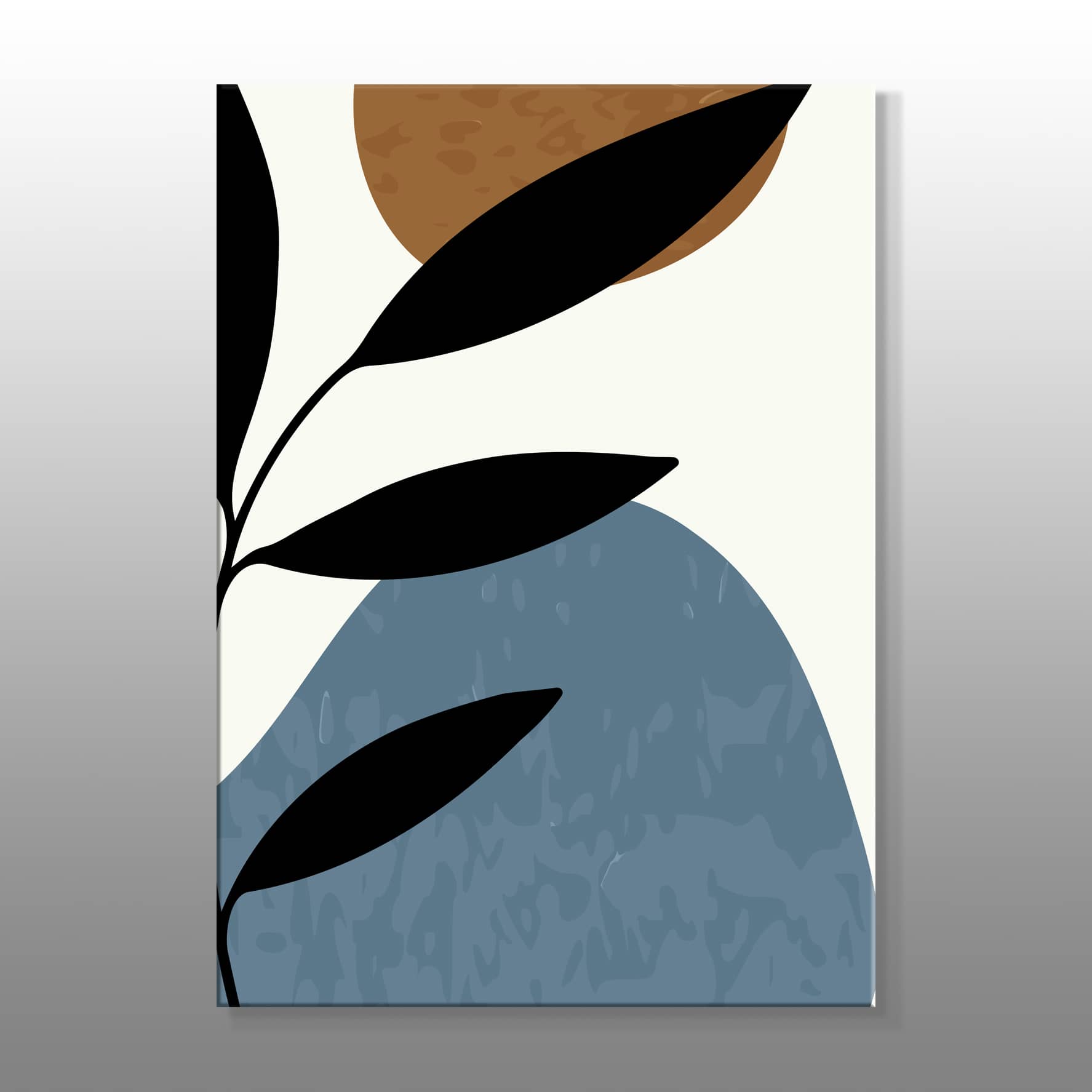 Minimal Mavi Ve Turuncu Renk Ve Siyah Bitki Kanvas Baskı Tablo