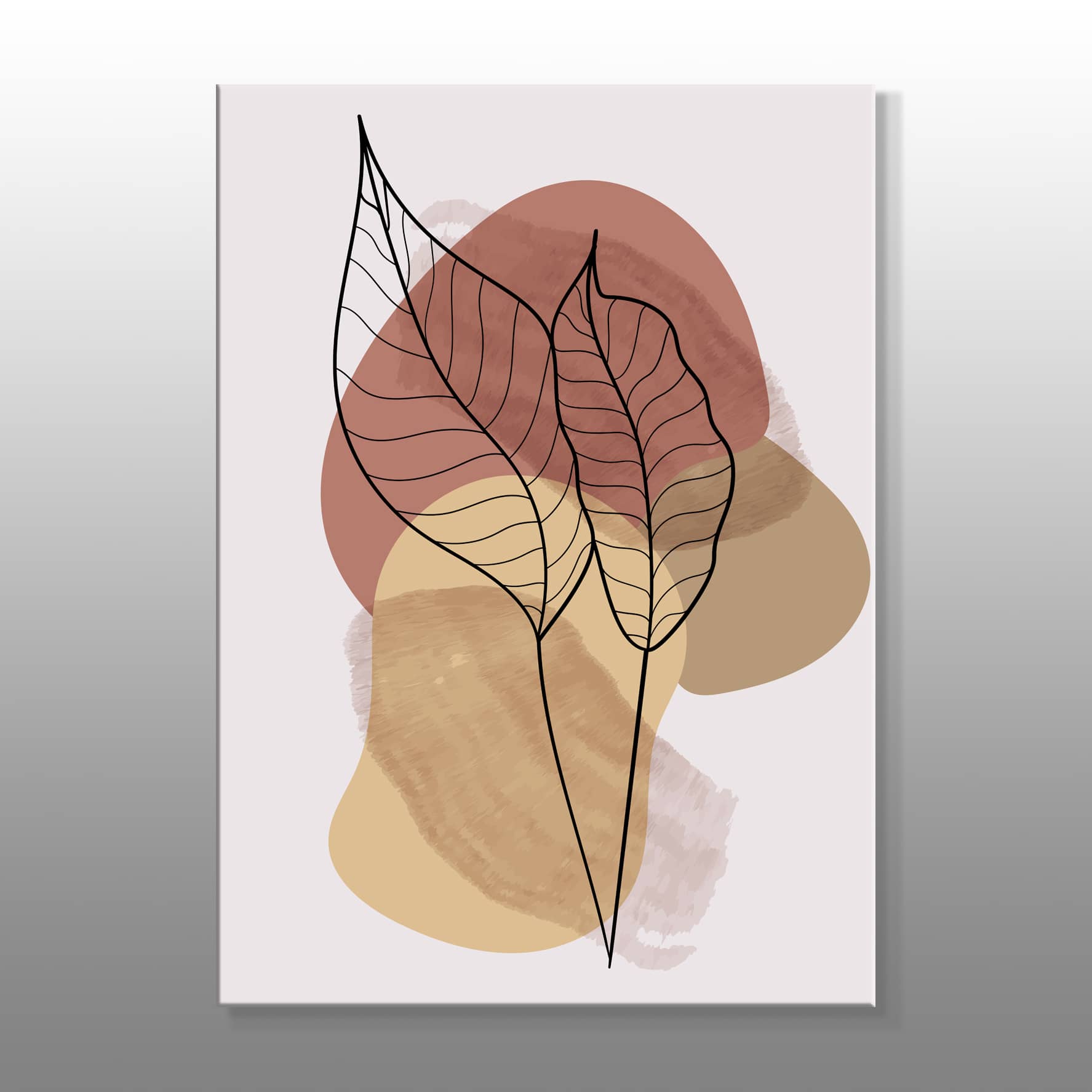 Minimal Renkler Ve Yapraklar Kanvas Baskı Tablo