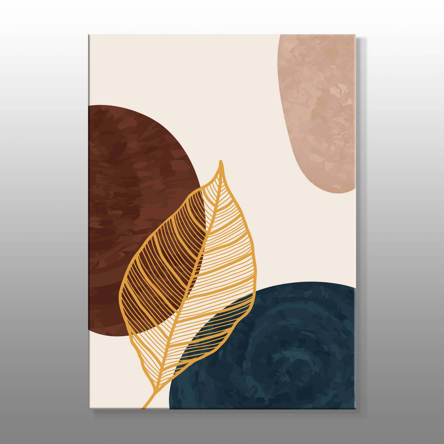 Minimal Sarı Renkli Yaprak Çizimi Kanvas Baskı Tablo