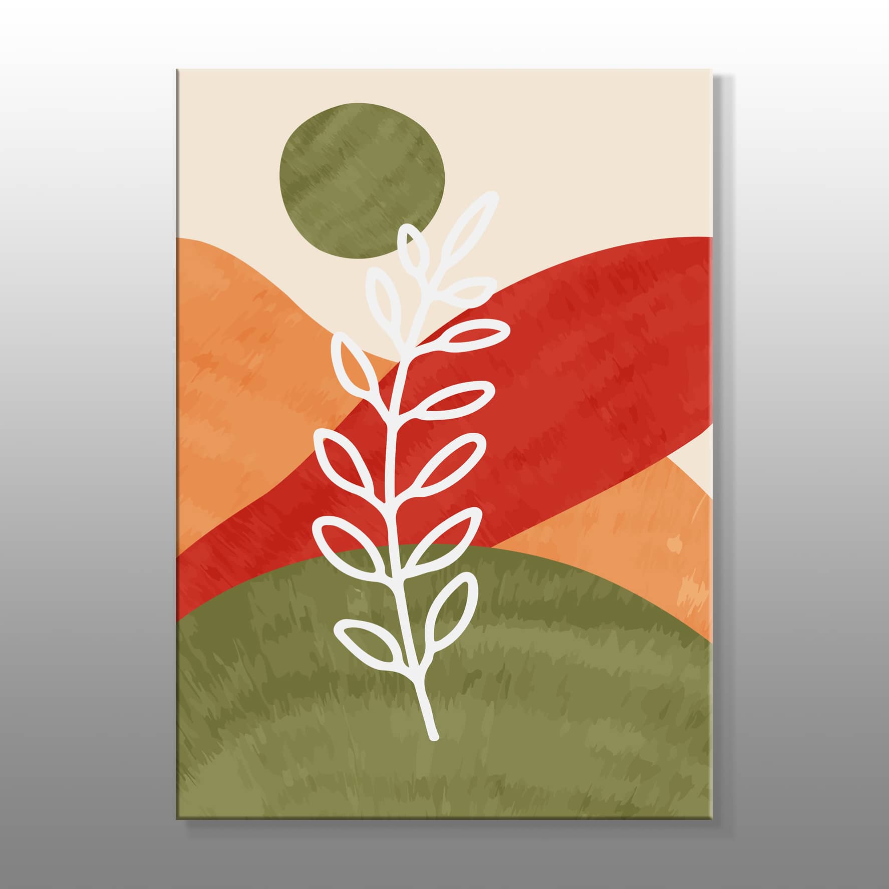 Minimal Sıcak Renkler Ve Beyaz Bitki Kanvas Baskı Tablo