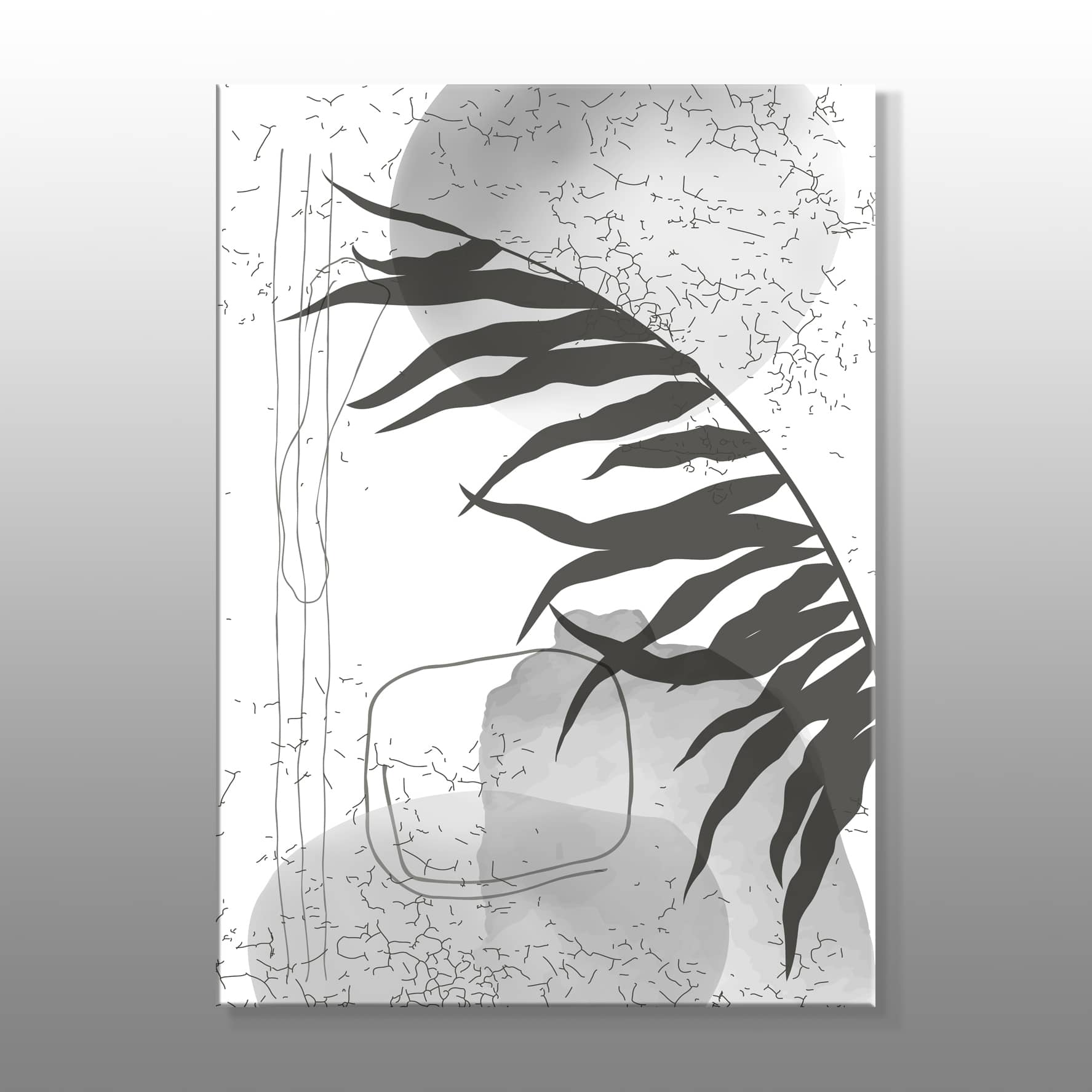 Minimal Siyah Beyaz Bitki Kanvas Baskı Tablo