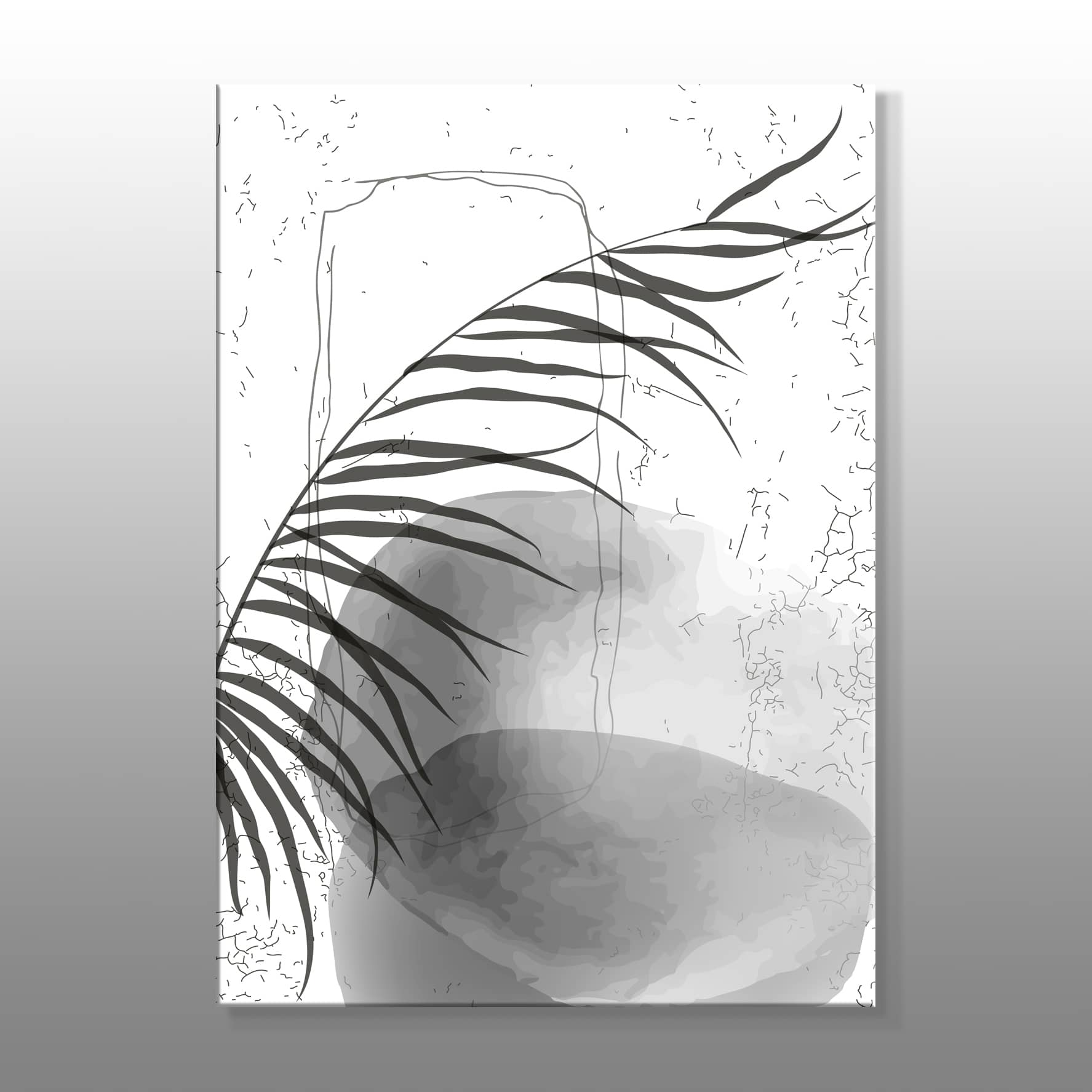 Minimal Siyah Beyaz Yapraklar Çizimi Kanvas Baskı Tablo