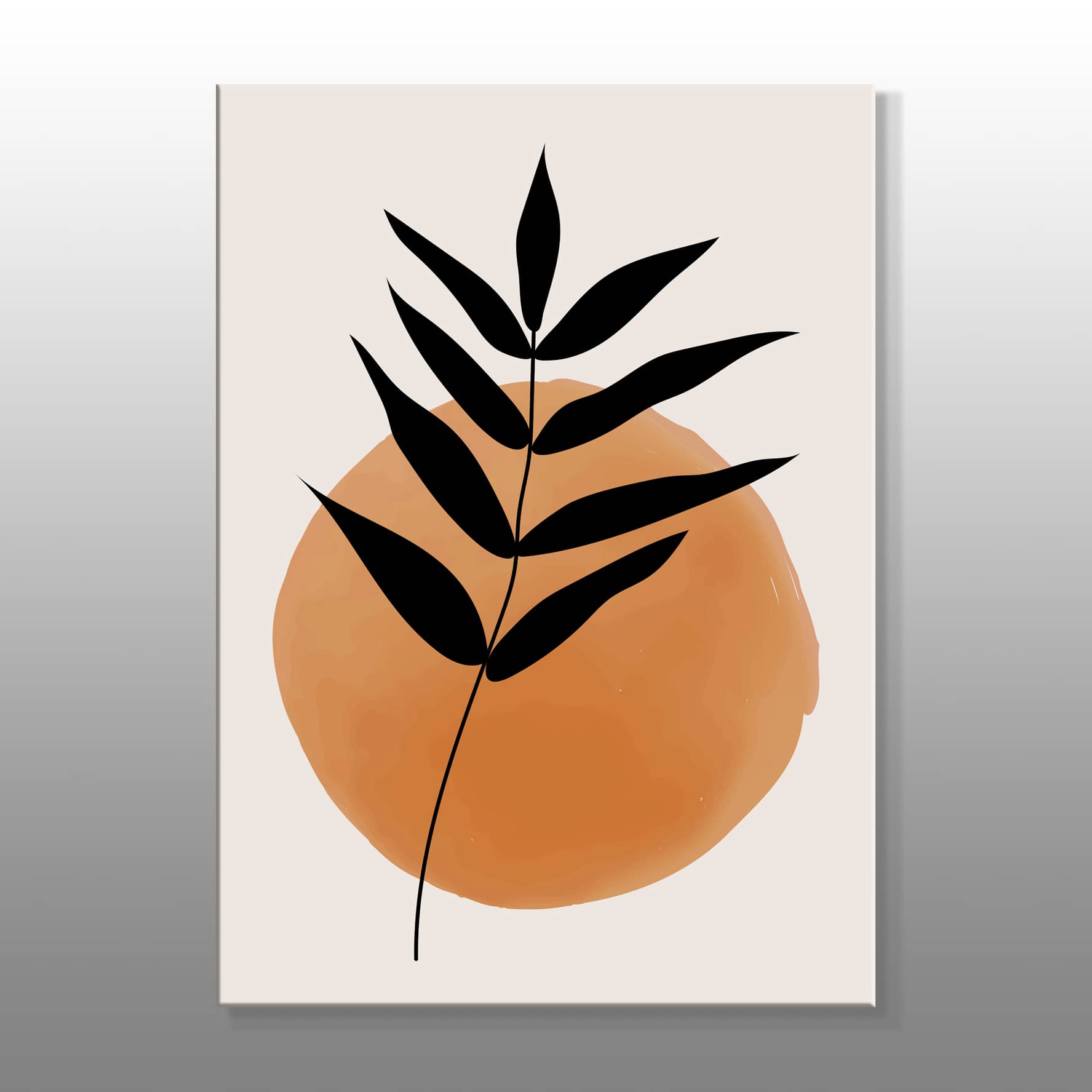 Minimal Siyah Bitki Ve Turunculuk Çizimler Kanvas Baskı Tablo