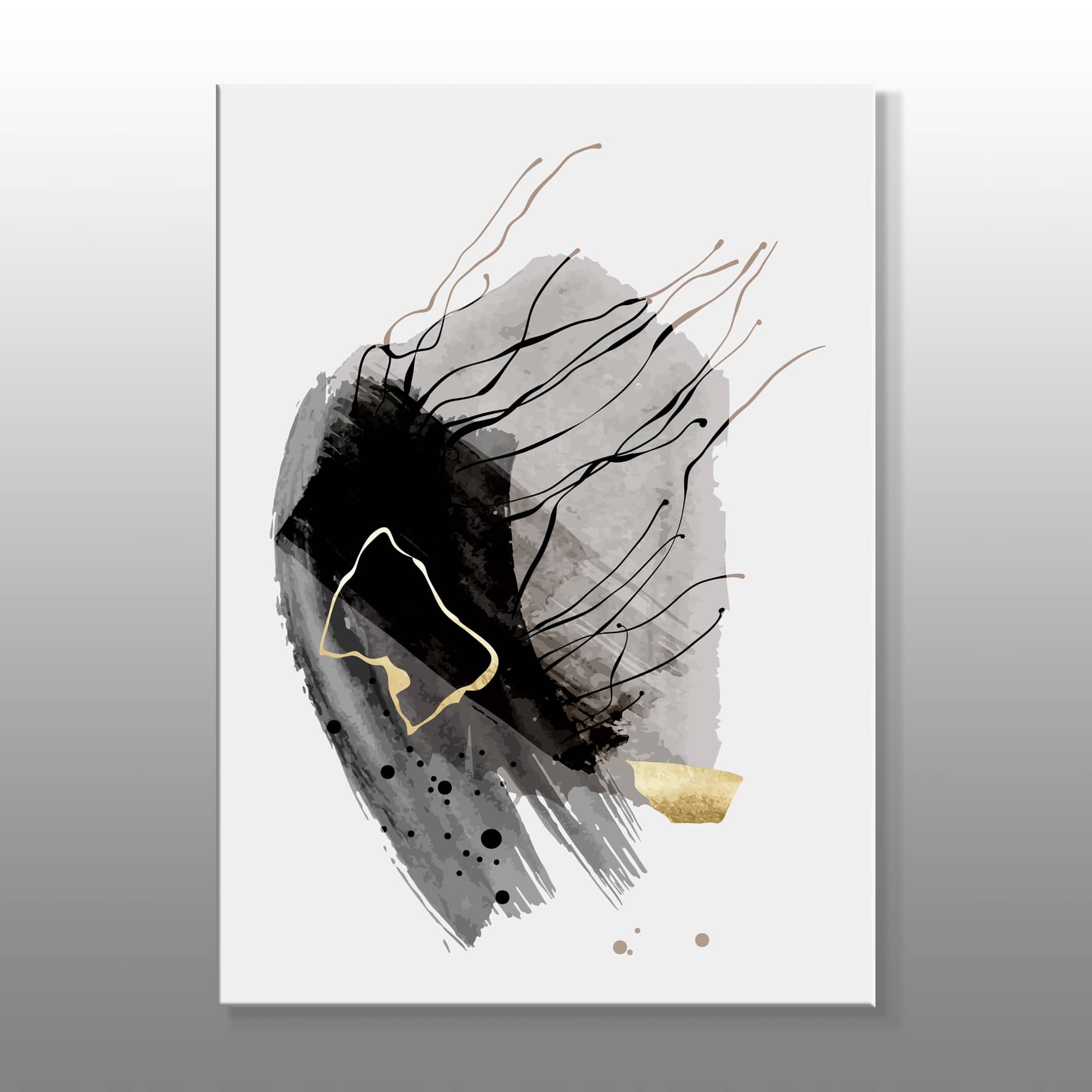 Minimal Siyah Rengin Çizgileri Ve Altın Kanvas Baskı Tablo