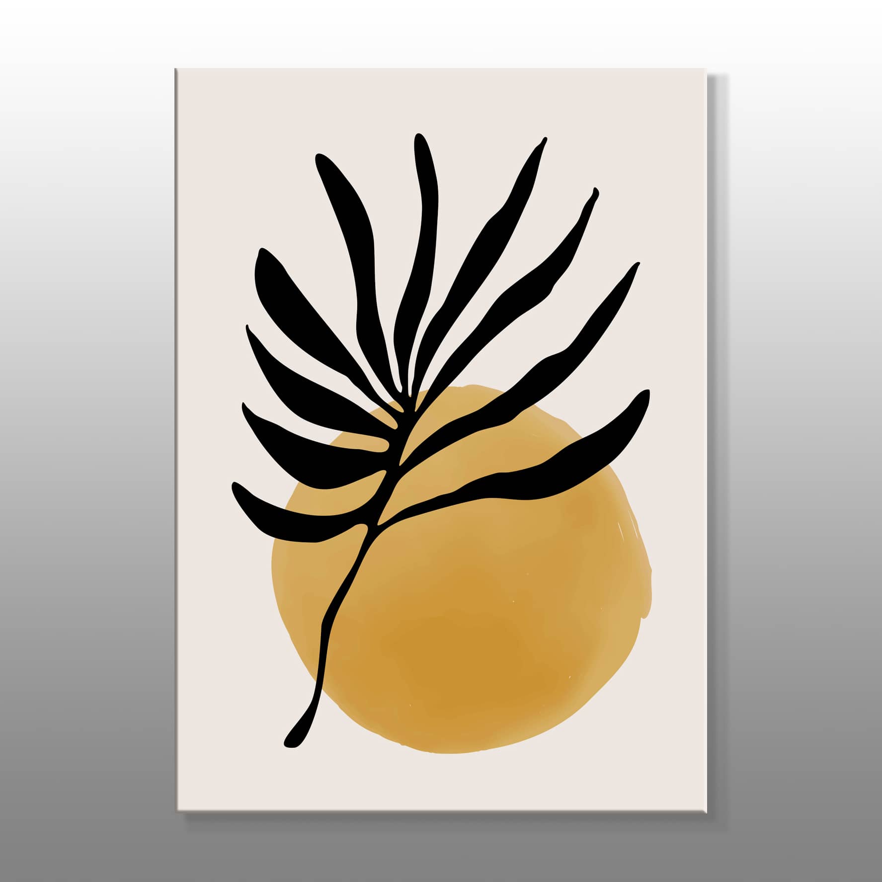 Minimal Siyah Yapraklar Ve Sarı Kanvas Baskı Tablo