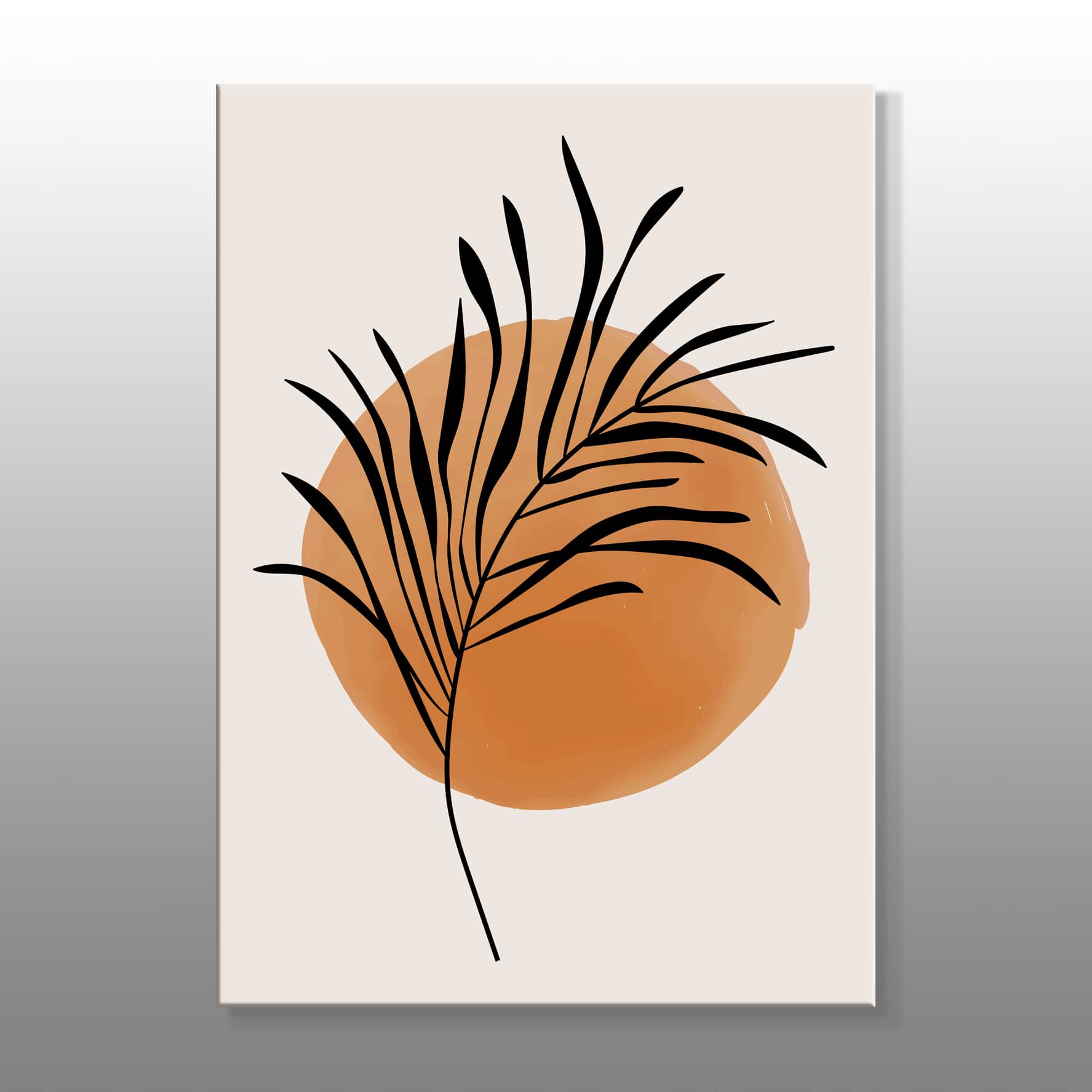 Minimal Siyah Yapraklarla Turuncu Kanvas Baskı Tablo