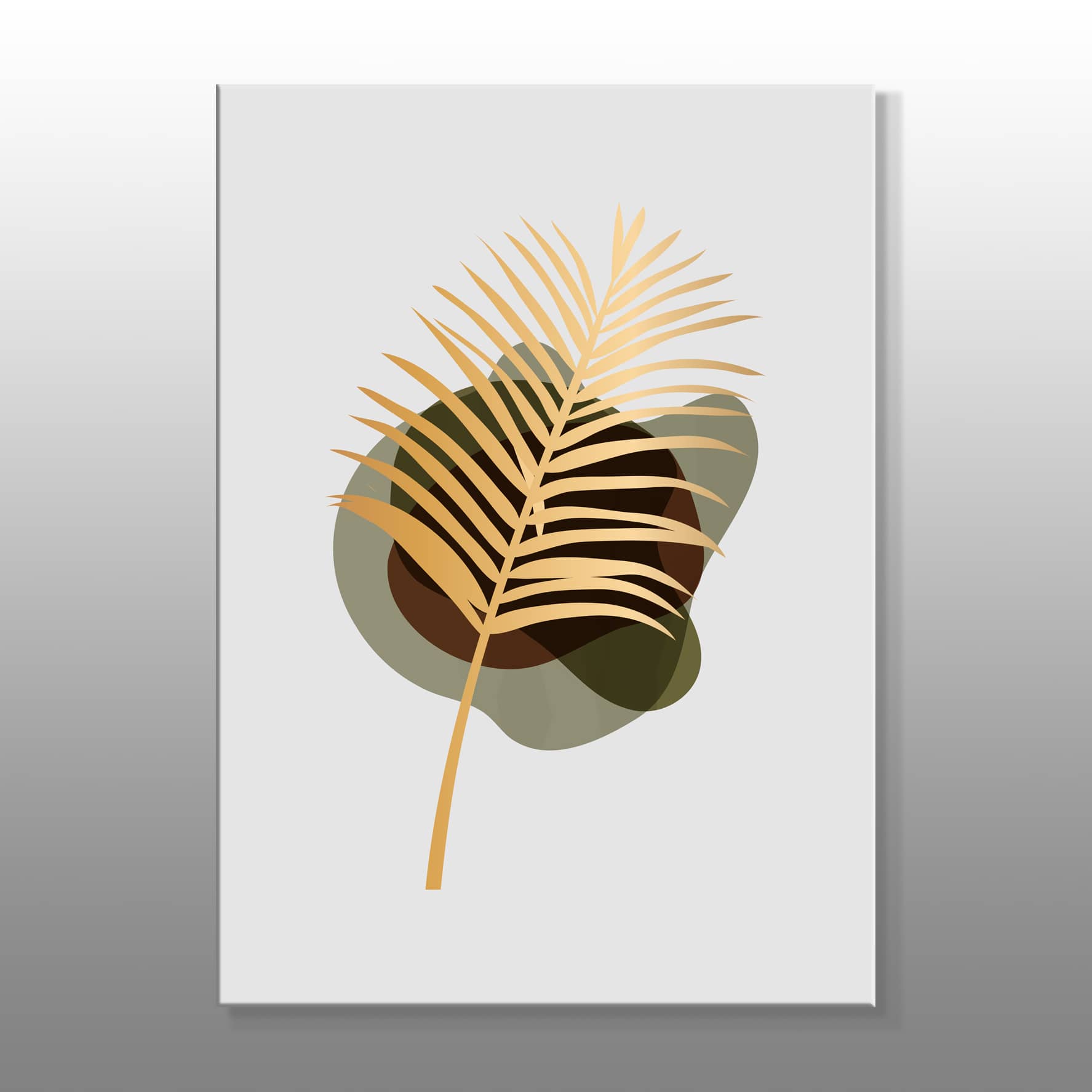 Minimal Toprak Renkler Üstüne Altın Yapraklar Kanvas Baskı Tablo