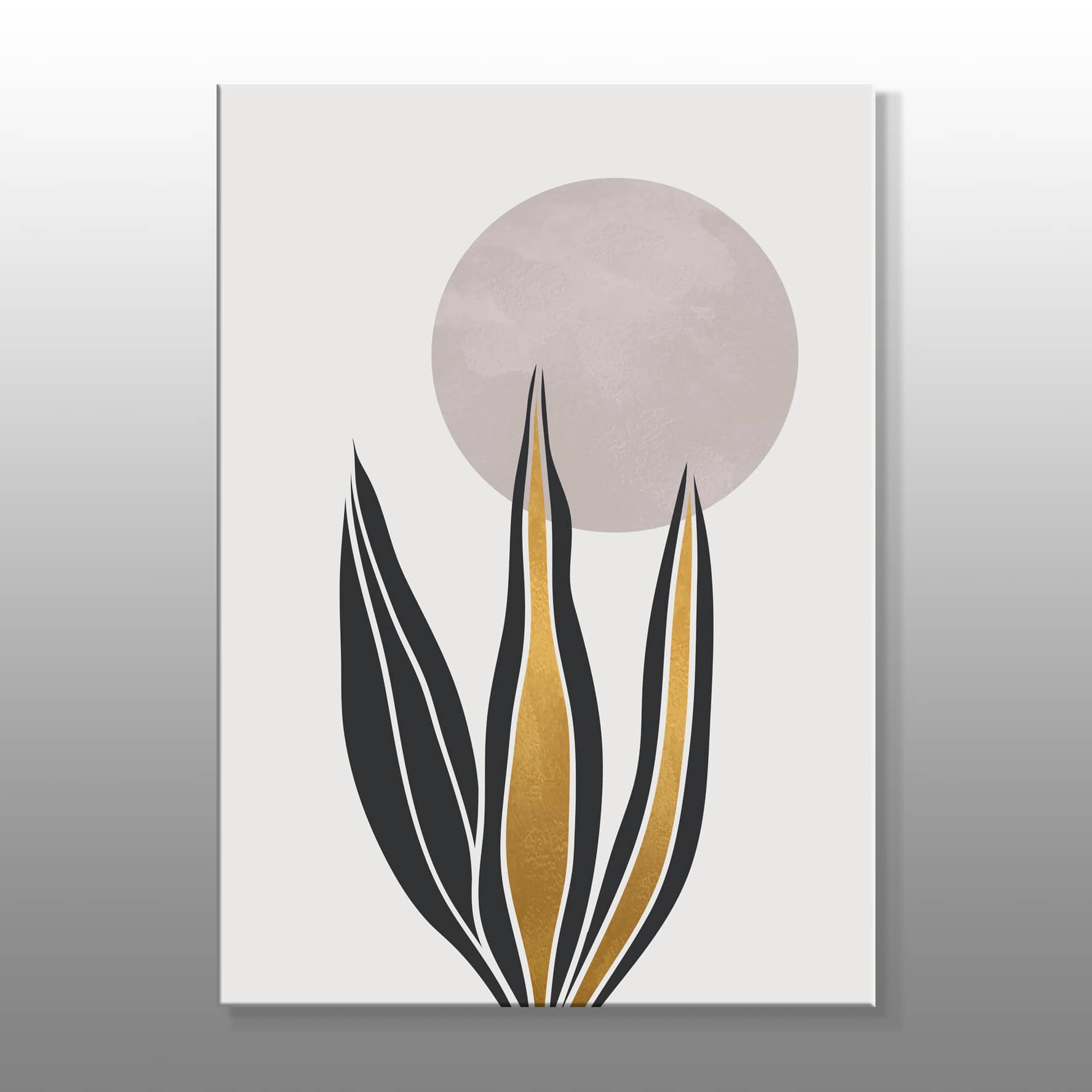 Minimal Yaprakların Arkasındaki Gri Ay Kanvas Baskı Tablo