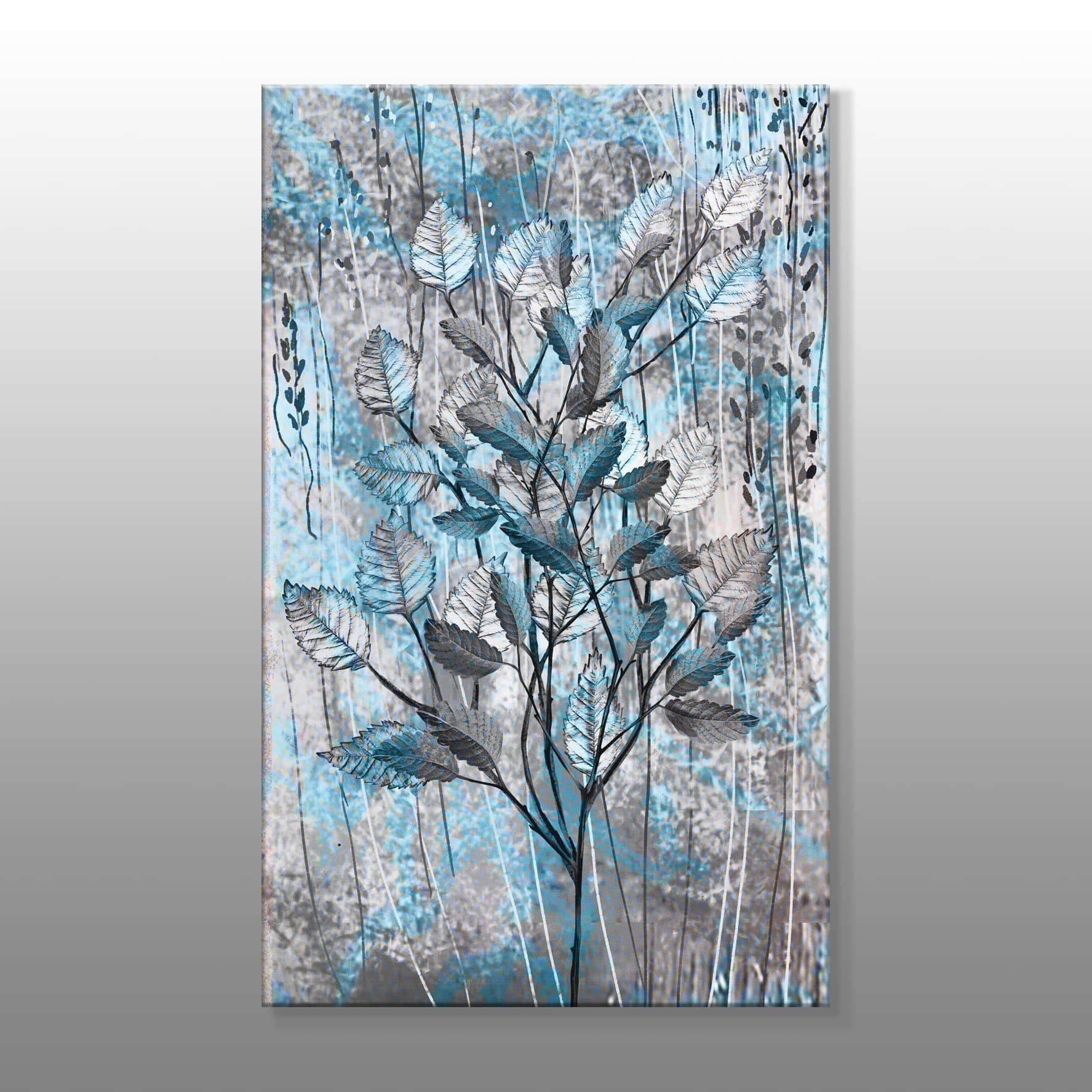 Modern Mavi Gri Bitki Kanvas Baskı Tablo