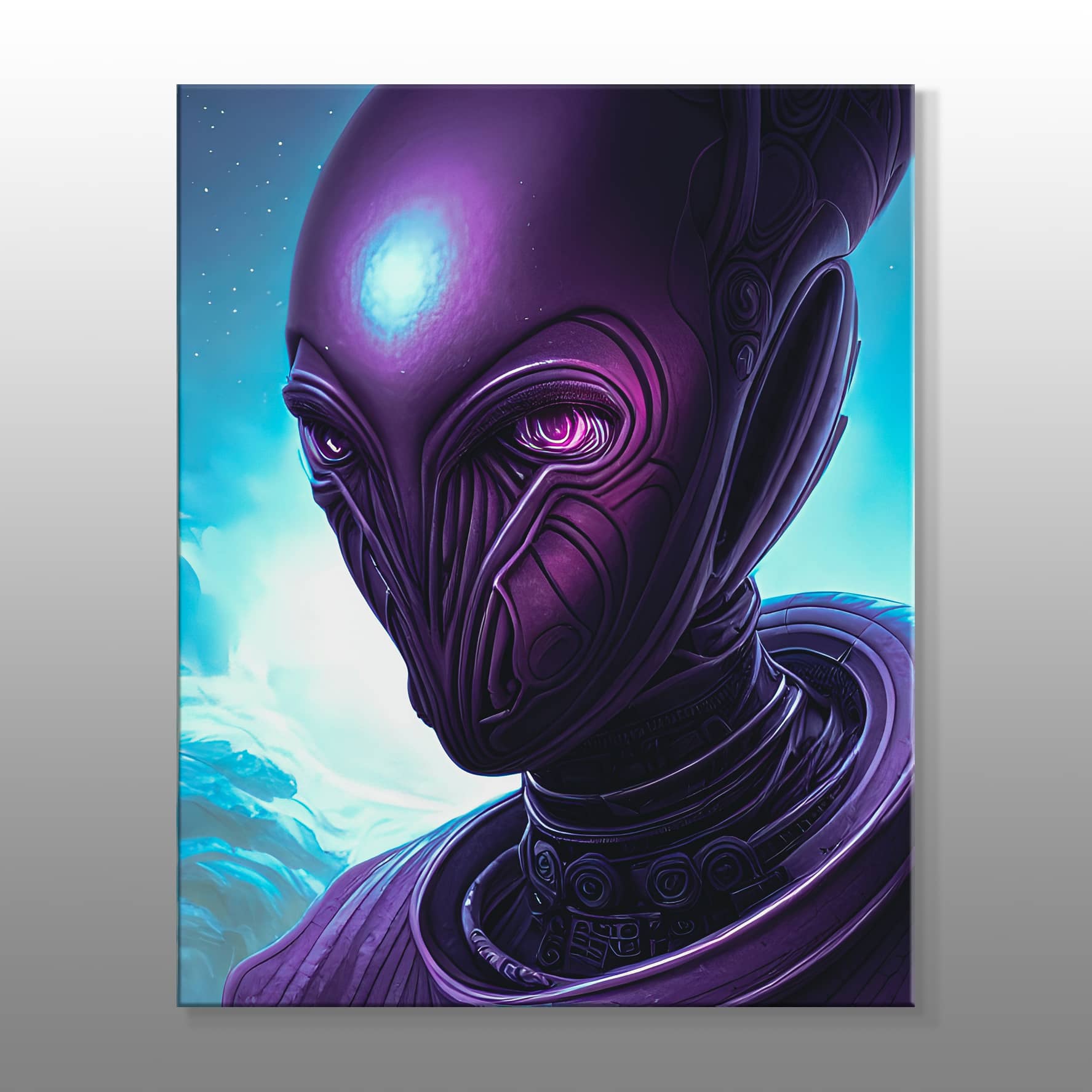 Mor Renkli Robotik Uzaylı Kanvas Baskı Tablo