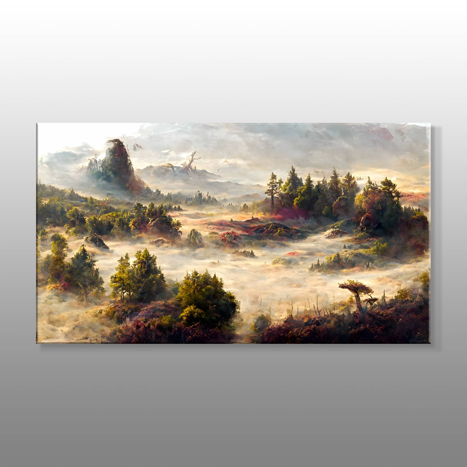 Sisli Doğa Manzarası – Huzurun ve Doğanın Büyüsü Kanvas Tablo