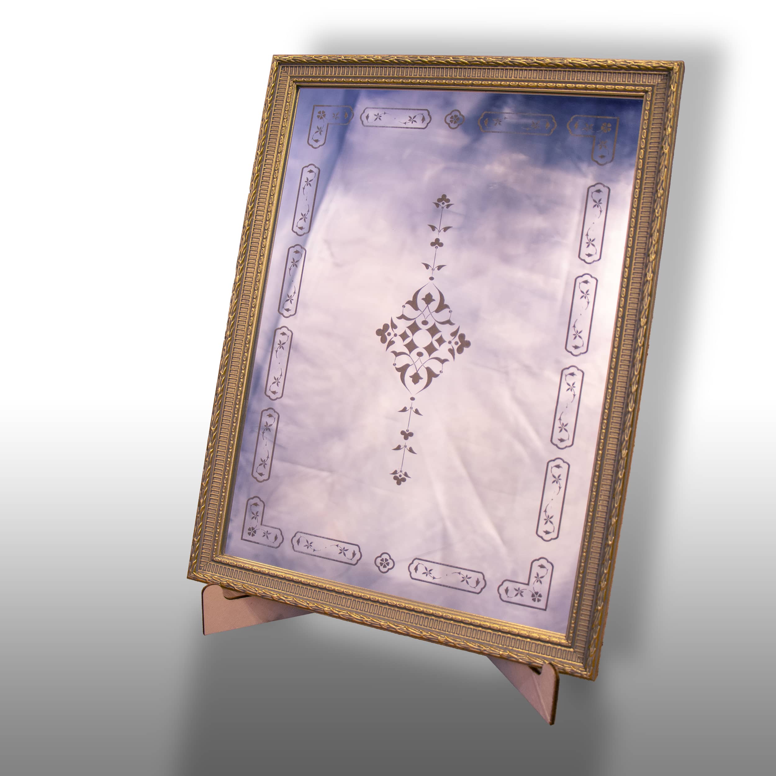 Altın renkli şık çerçeveye sahip, soyut desenli dekoratif tablo