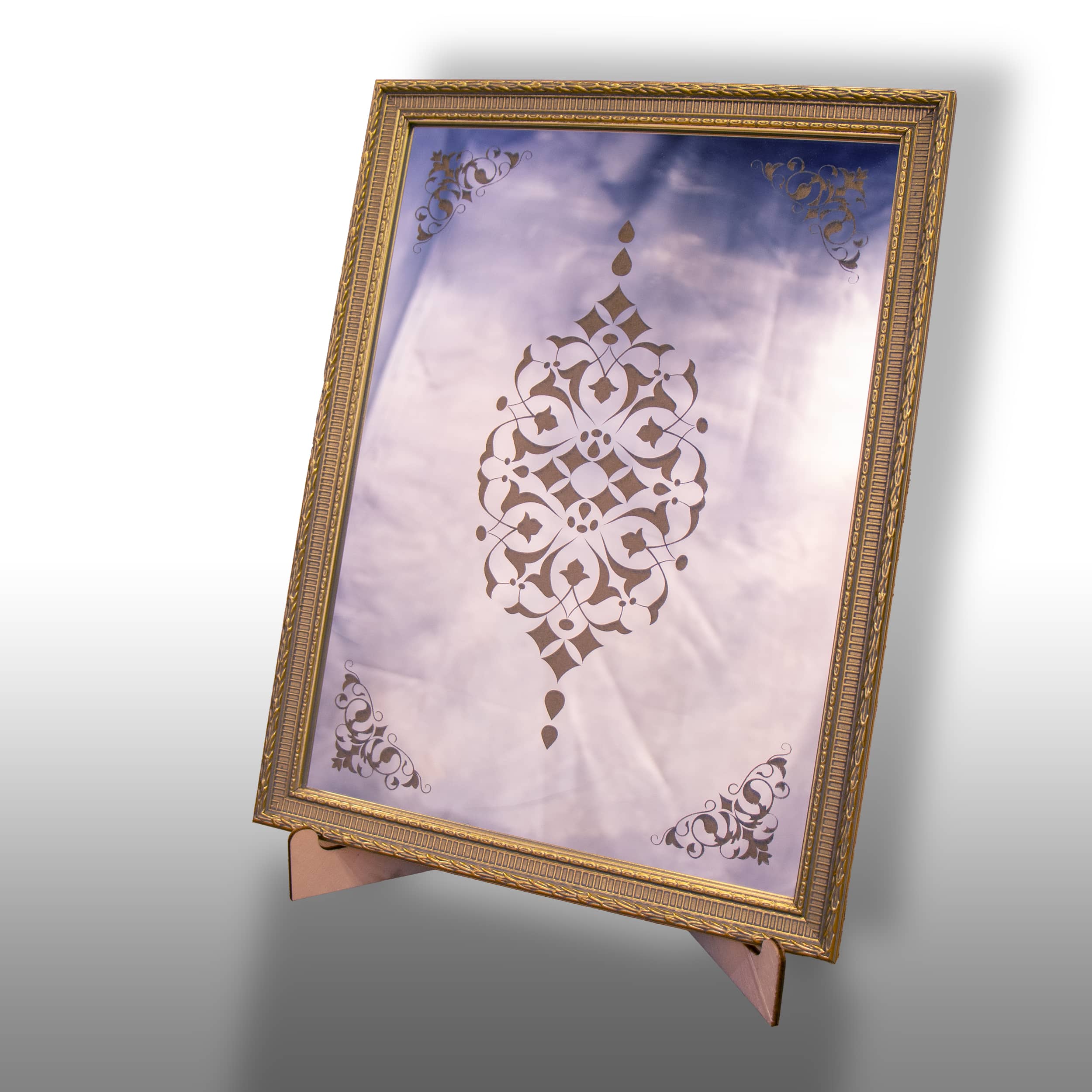 Altın renkli şık çerçeveye sahip, soyut desenli dekoratif tablo