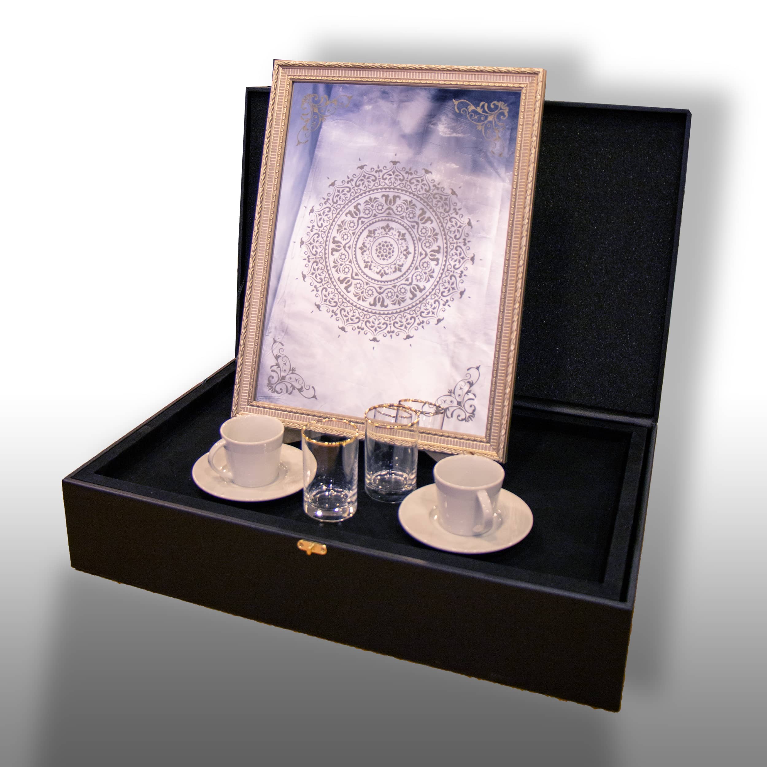 Bu şık ve zarif kahve fincanı seti, evinizin her köşesinde benzersiz bir atmosfer yaratmak için tasarlanmıştır. Set, iki adet porselen kahve fincanı, iki adet altın şerit detaylı su bardağı ve ince işçilikle hazırlanmış dekoratif bir çerçeveli tablodan oluşmaktadır. Tüm parçalar, kaliteli malzemelerden üretilmiş olup, uzun yıllar kullanım için uygundur. Set İçeriği: 2 adet ince beyaz porselen kahve fincanı ve fincan tabağı 2 adet altın şerit detaylı su bardağı Altın renkli şık çerçeveye sahip, soyut desenli dekoratif tablo Öne Çıkan Özellikler: İnce işçilik ve zarif tasarım Porselen fincanlar ve cam bardaklarda altın şerit detaylar Çerçeveli tablo ile setin tamamlayıcı dekorasyon unsuru Özel kutusunda gönderilir, hediye olarak ideal Kullanım Alanları: Evde misafirlerinize sunum yaparken şıklık katın. Ofisinizde veya iş yerinizde şık bir dekorasyon ve kahve sunumu sağlayın. Özel günler ve kutlamalar için mükemmel bir hediye seçeneği. Bu özel tasarım kahve seti, sevdiklerinize veya kendinize sunabileceğiniz zarif bir hediye seçeneği sunar. Sınırlı sayıda üretilen bu özel seti kaçırmayın!