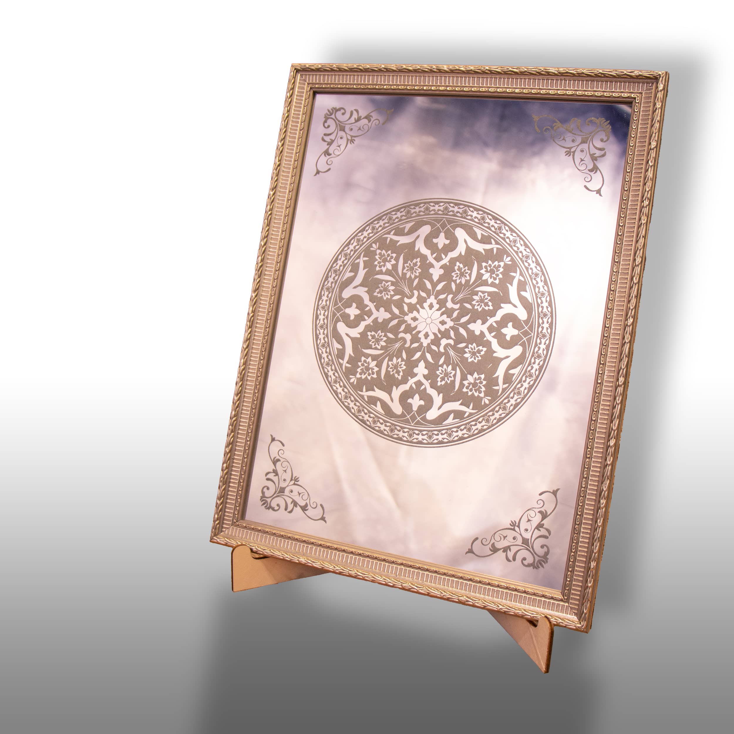 Altın renkli şık çerçeveye sahip, soyut desenli dekoratif tablo