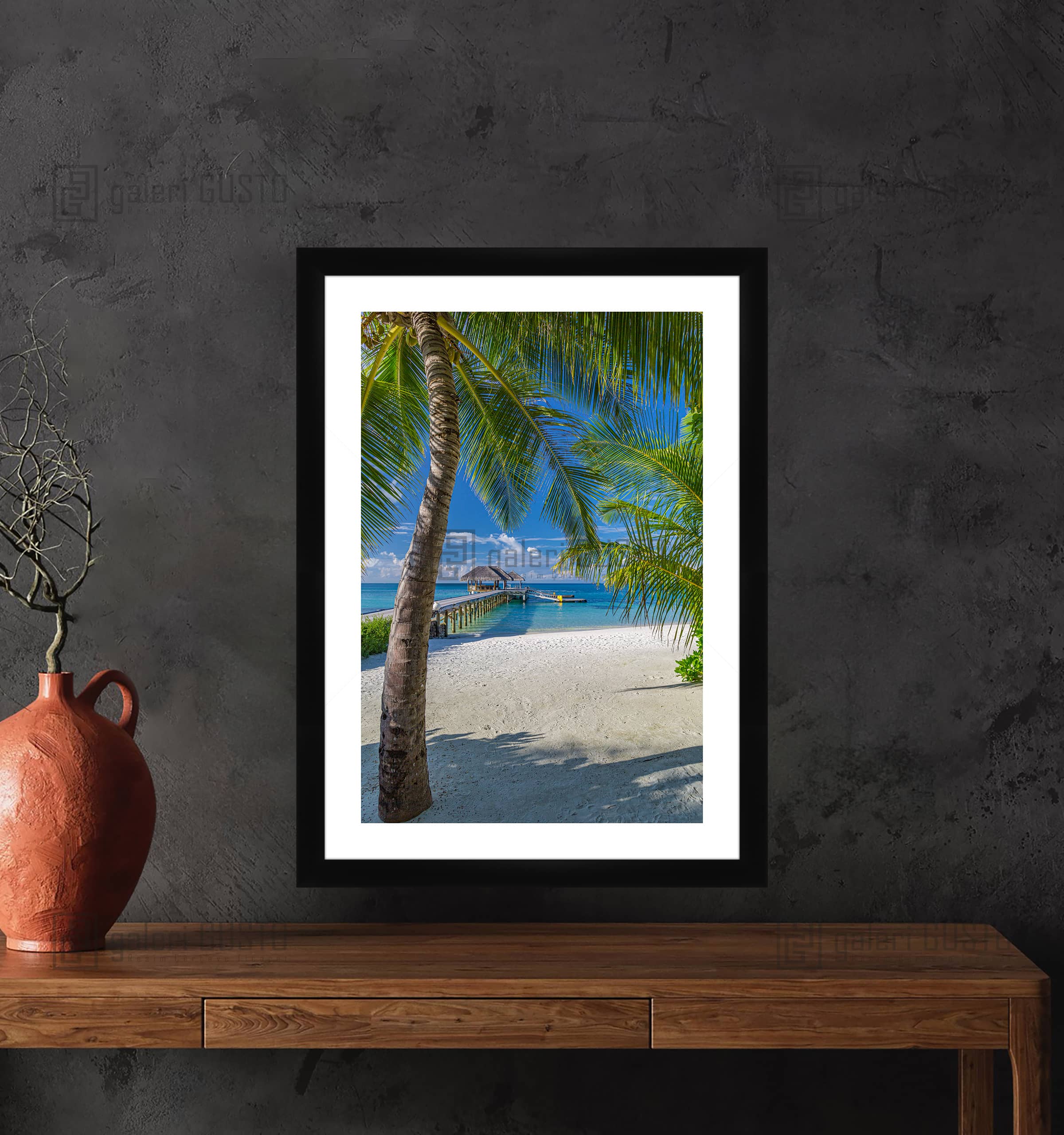 Palmiye Ağaçları Arasından İskele Manzarası Çerçeveli Poster
