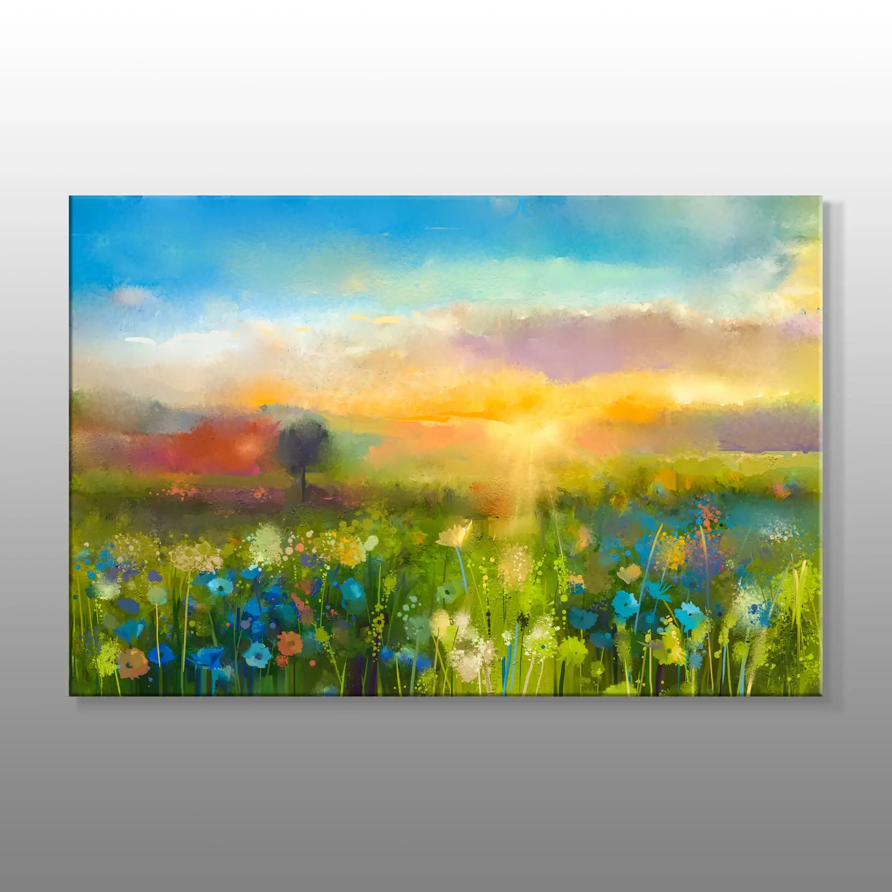 Rengarenk Kır Ve Günışığı Soyut Kanvas Baskı Tablo