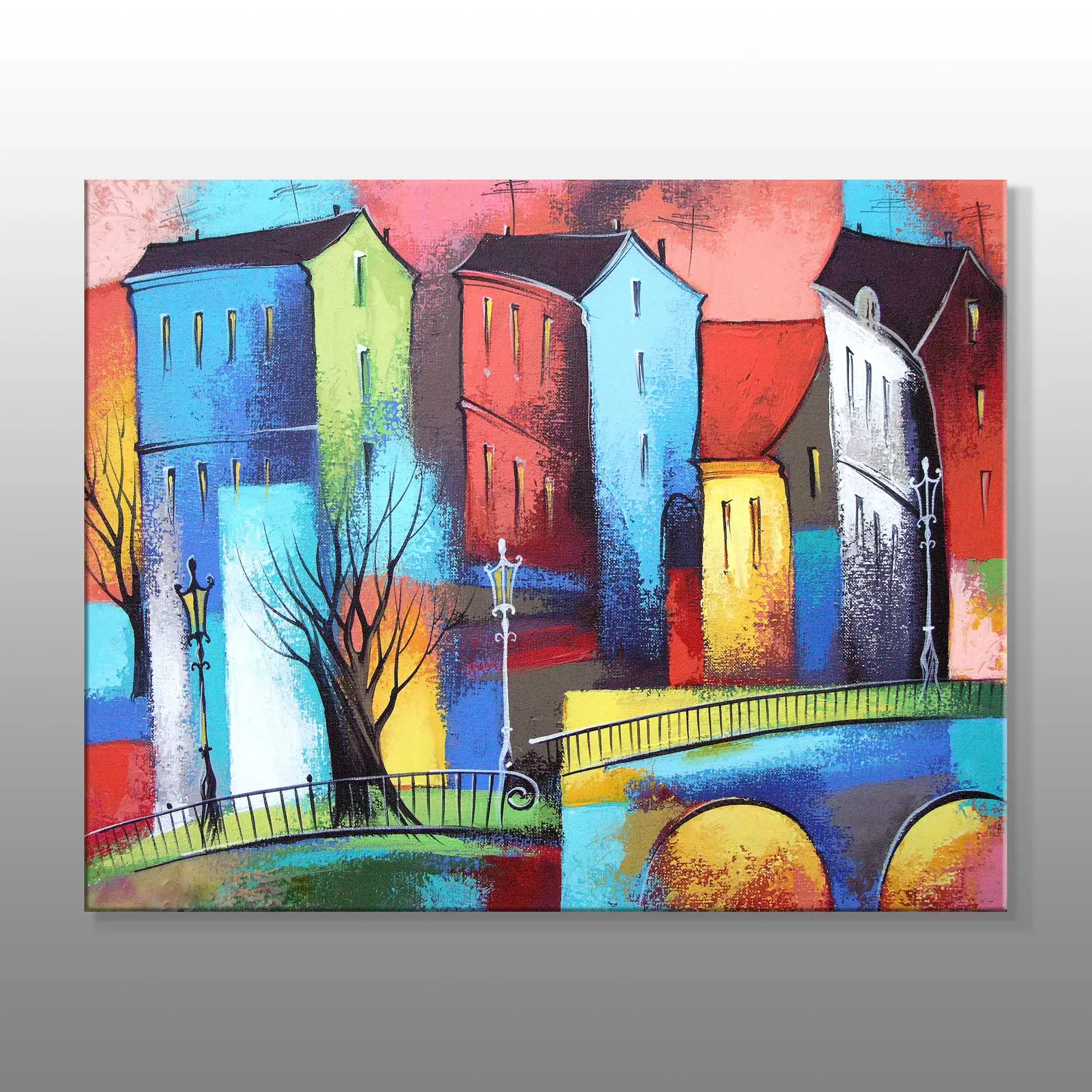 Renkli Evler Soyut Kanvas Baskı Tablo