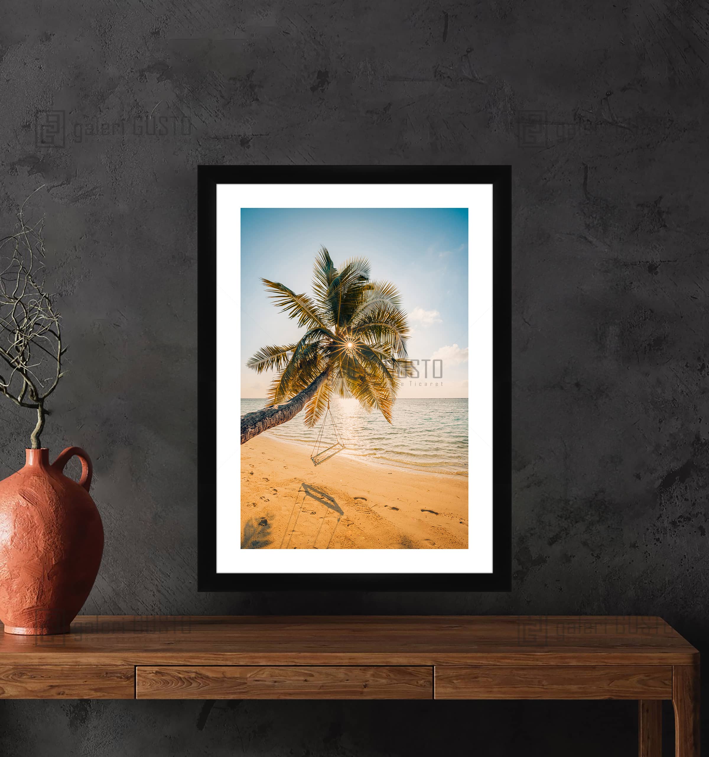 Sahilde Palmiye Ağacı Çerçeveli Poster