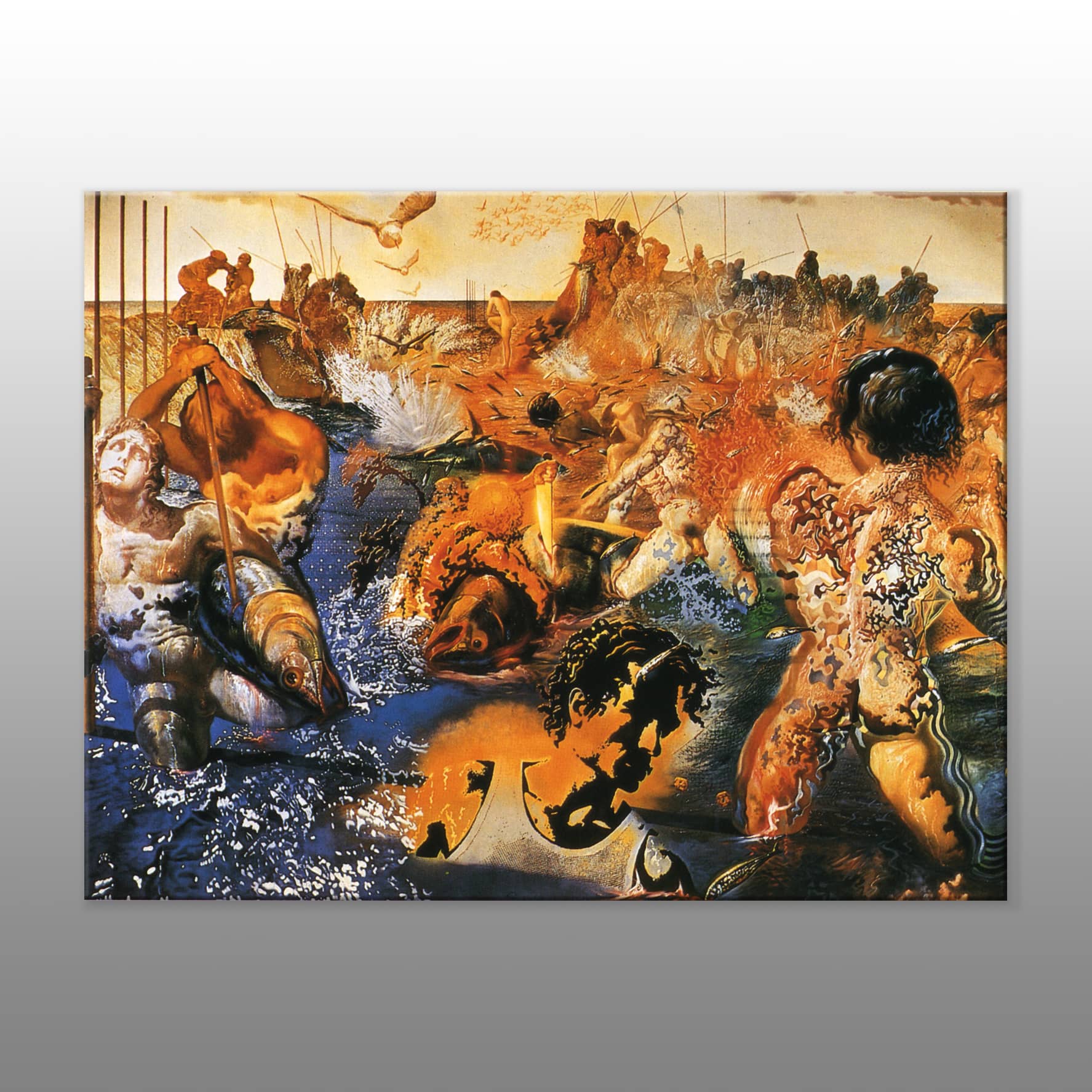 Salvador Dali The Hallucinogenic Toreador adlı eseri, sürrealist sanatın derinliklerini ve Dali’nin özgün hayal gücünü sergileyen çarpıcı bir başyapıttır. 1968-1970 yılları arasında tamamlanan bu tablo, Dali'nin sanatındaki tematik zenginliği ve teknik ustalığını gözler önüne serer. Tablo, Dali’nin çocukluğunda etkisinde kaldığı İspanyol boğa güreşi kültürüne eleştirel bir bakış sunar. İlk bakışta Venüs de Milo figürlerinin tekrarlandığı bir kompozisyon gibi görünse de bu figürler arasında boğa güreşçisi (toreador) ve boğa motifleri dikkatlice gizlenmiştir. Dali, optik illüzyonlar kullanarak, bir dizi Venüs figürünün yüz hatlarını bir toreadorun portresine dönüştürmüştür. Bu teknik, onun sanatındaki derinlik ve çok katmanlı anlam dünyasını yansıtır. Tabloda, zıt renkler ve canlı tonlarla yaratılmış karmaşık bir görsel yapı göze çarpar. Yeşil, kırmızı ve altın tonları hem İspanyol kültürünün canlılığını hem de Dali’nin sürrealist dünyasının hayal gücünü yansıtır. Boğa figürü, kan damlaları ve arenadaki seyirciler gibi ayrıntılar, eserin her köşesine bir hikâye sığdırır.