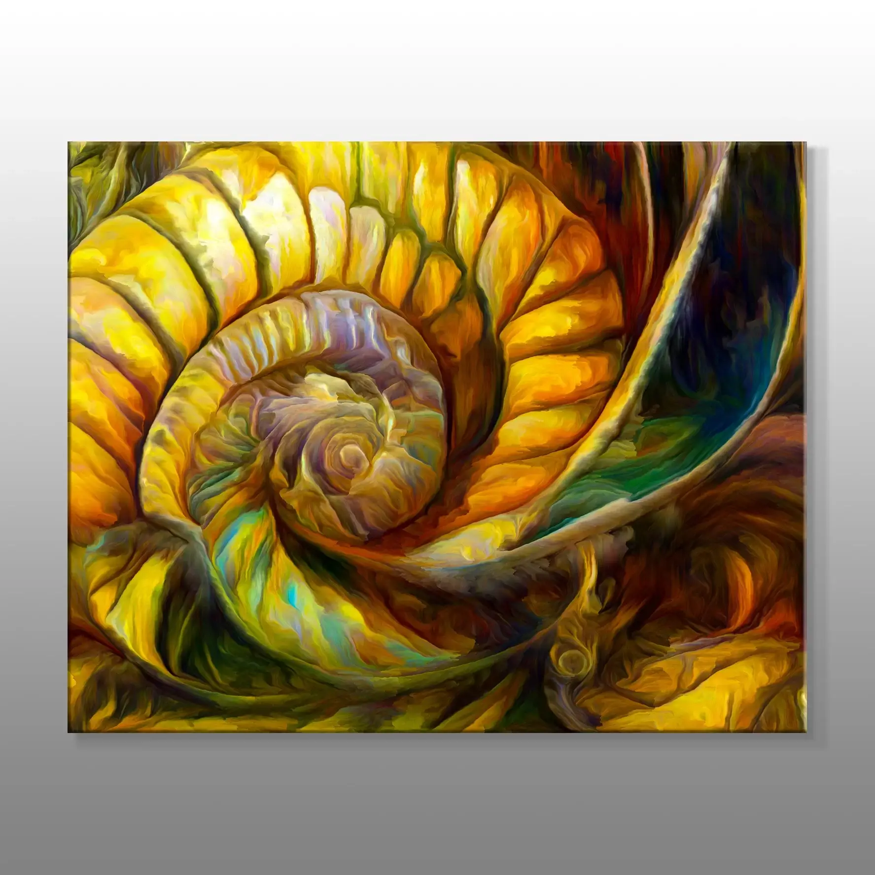 Sarı Renk Tonlu Spiral Kabuk Soyut Kanvas Baskı Tablo