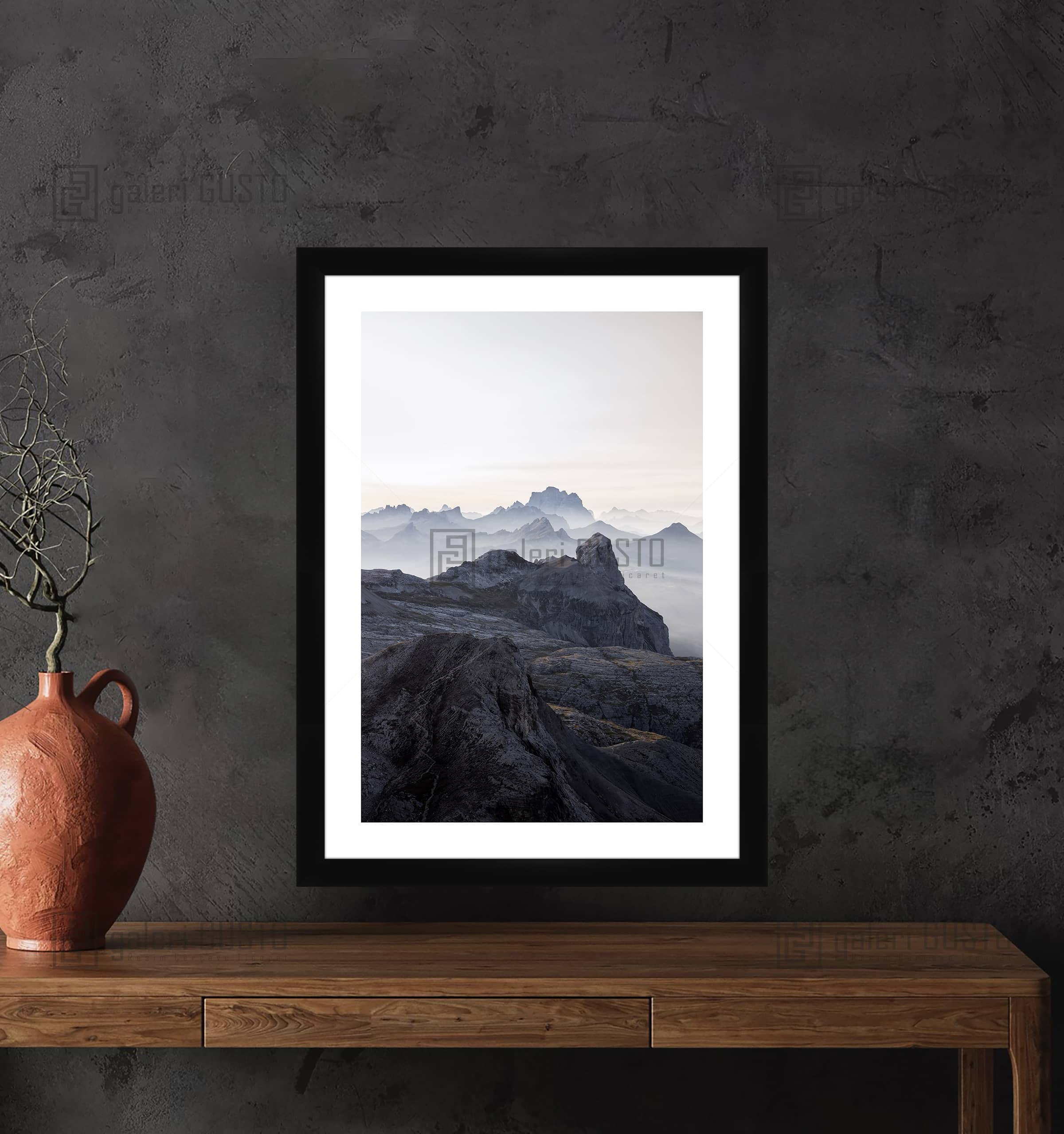 '50 gr/m² Mat Kuşe Kağıda Baskı Yapılmıştır. 2mm Normal Cam 2cm Siyah Lamine Çerçeve