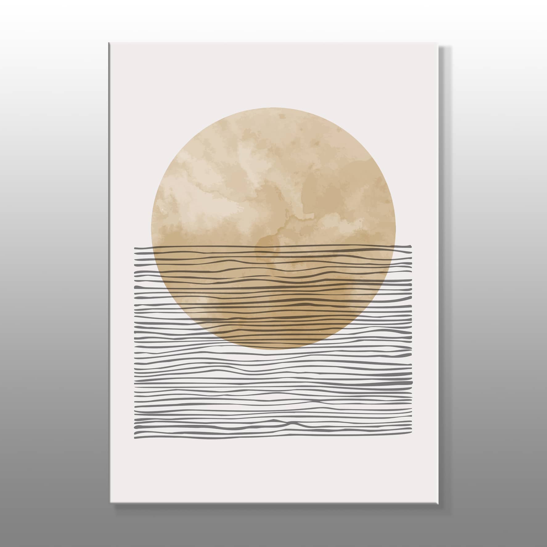 Siyah Çizgiler Ve Altın Yuvarlak Minimal Çizimi Kanvas Baskı Tablo