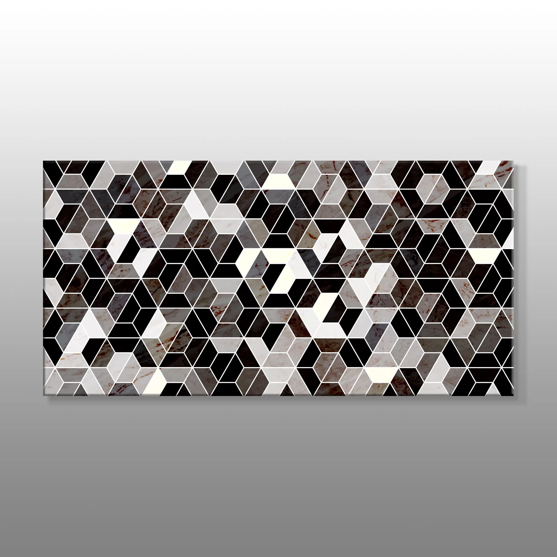 Siyah Kahverengi Ve Beyaz Altıgenler Soyut Kanvas Baskı Tablo