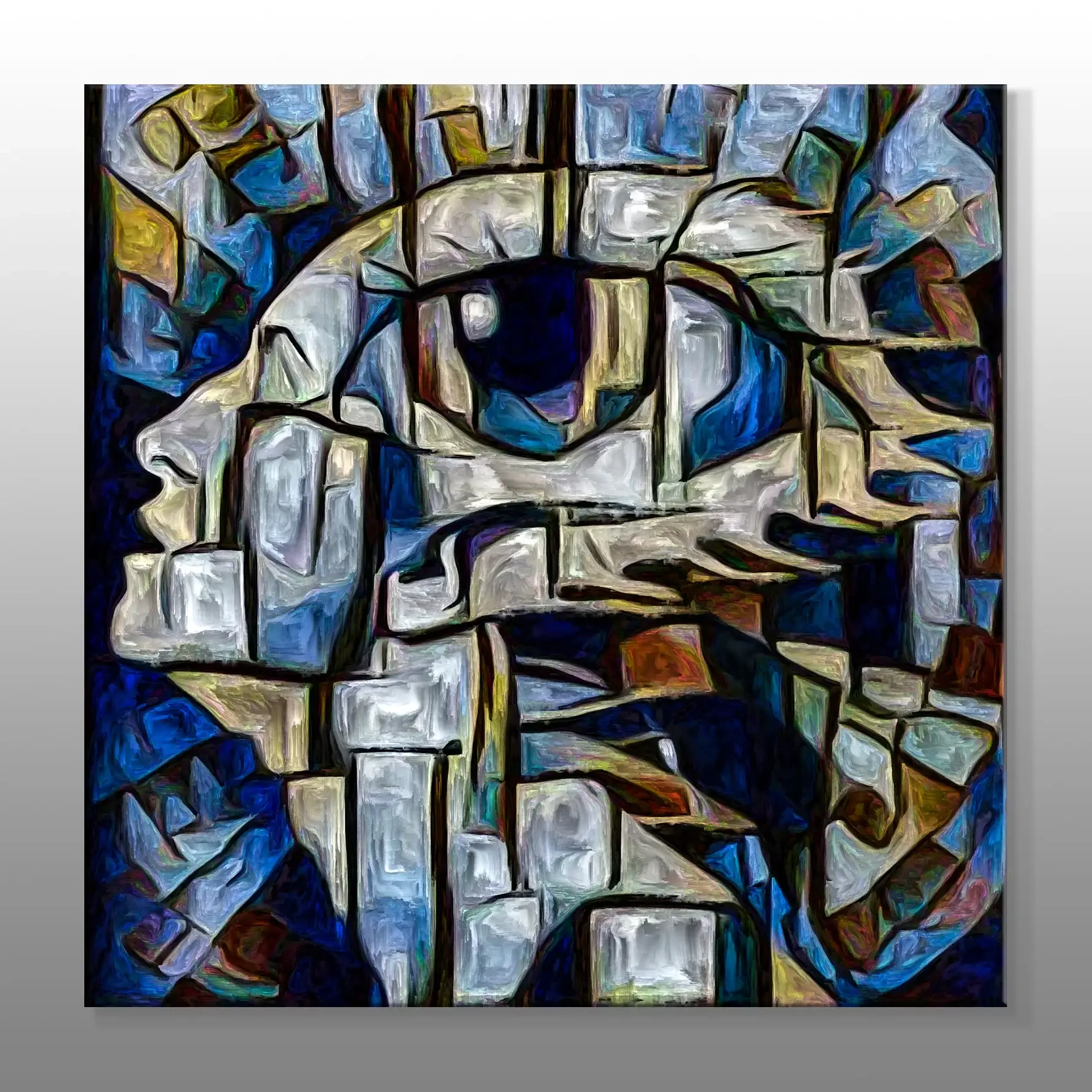 Soğuk mavi ve yeşil tonlarının hakim olduğu kompozisyonda, kadının gözündeki detaylar ve cam motifleri adeta birer hikâye anlatıyor. Soyut formlar ile gerçekçi dokunuşların ustaca birleşimi, tabloya hem modern hem de mistik bir hava katıyor. Bu eser, bulunduğu mekâna duygusal yoğunluk ve sanatsal derinlik eklemek isteyenler için ideal bir tercih.
