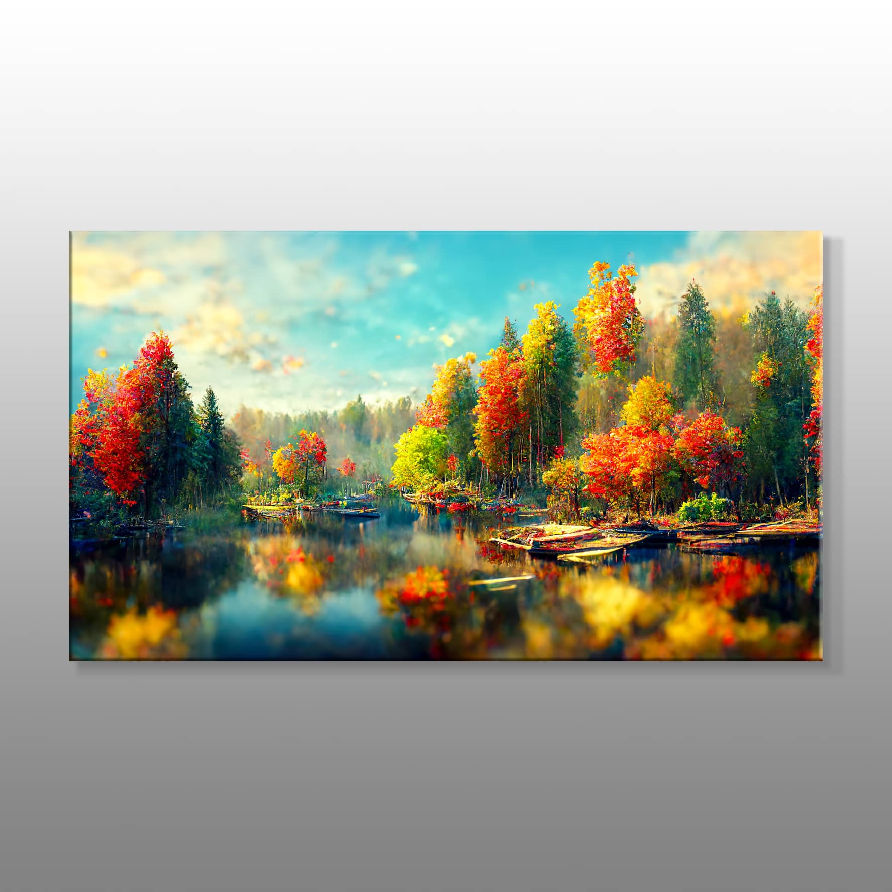 Suda Parlayan Renkli Ağaçlar Kanvas Baskı Tablo