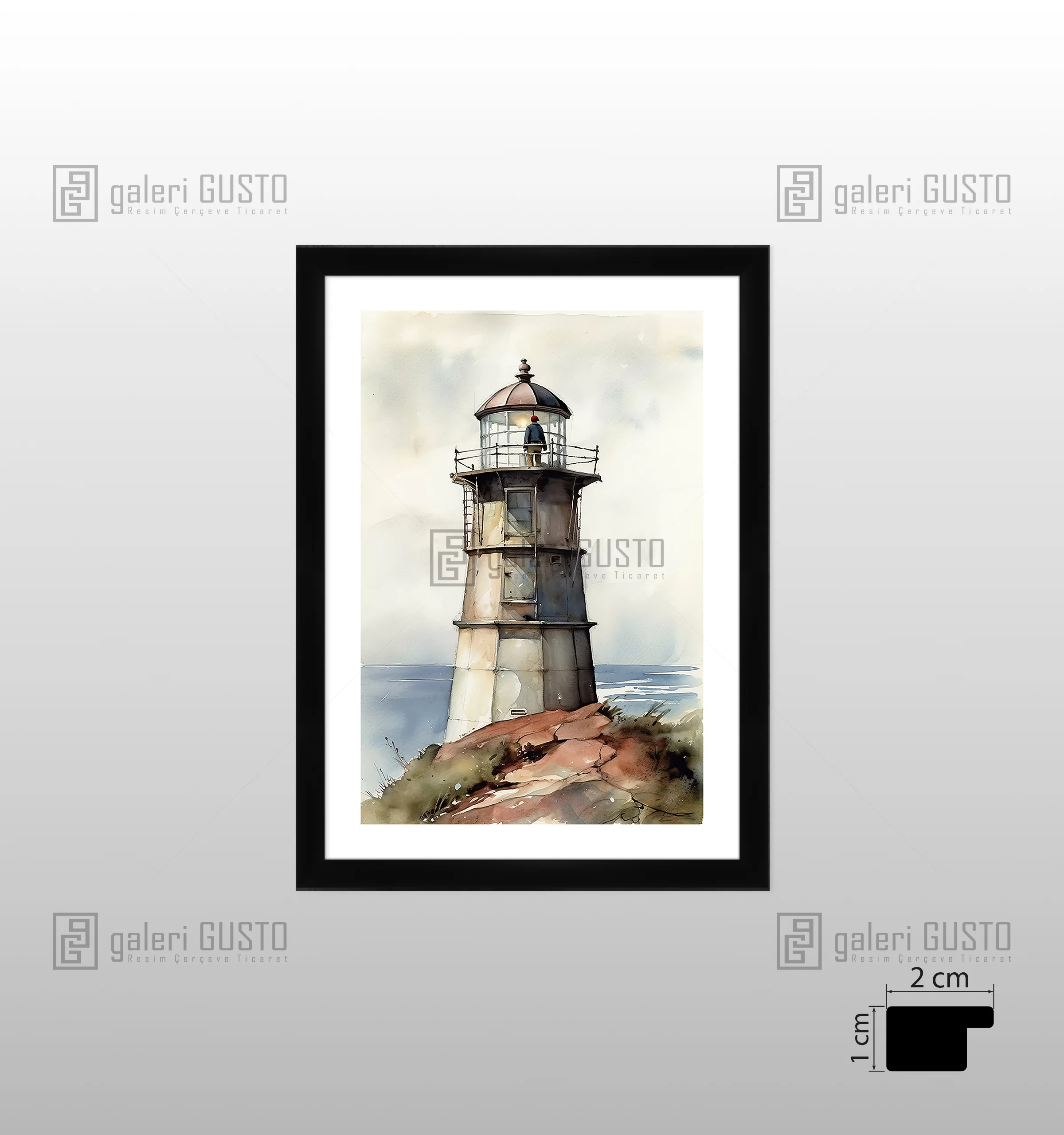 Sulu Boya Deniz Feneri Çerçeveli Poster