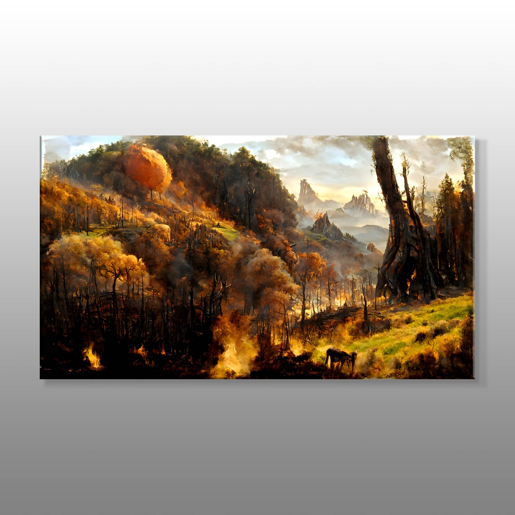 Turuncu Renkli Sonbahar Ormanı Kanvas Baskı Tablo