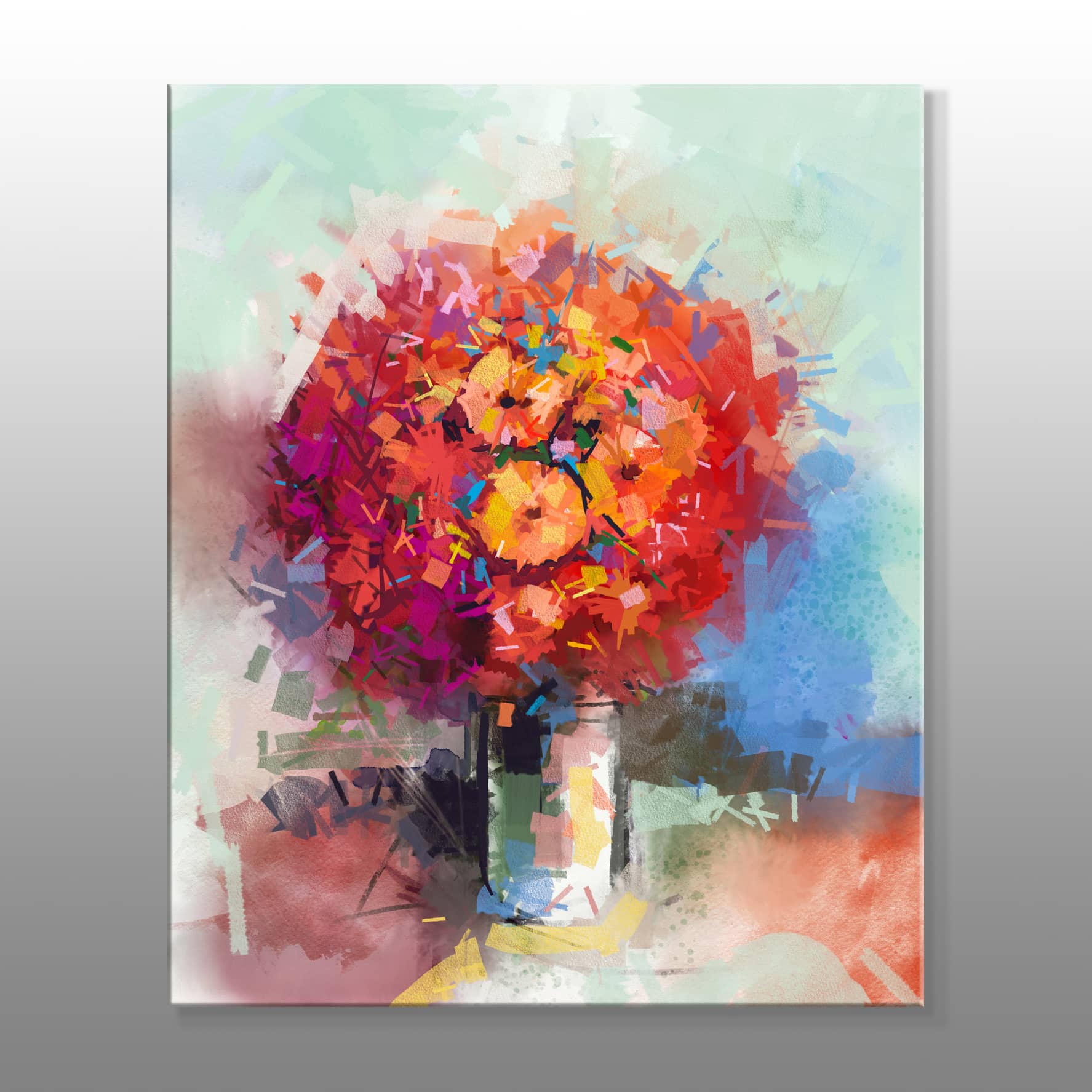 Turuncu Ve Kırmızı Vazo Çiçekleri Kanvas Baskı Tablo
